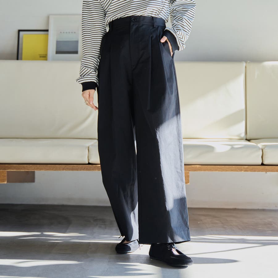 ボリュームシルエットで洗練された存在感を引き出す、トレンド感あふれるワイドパンツ