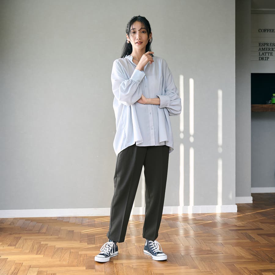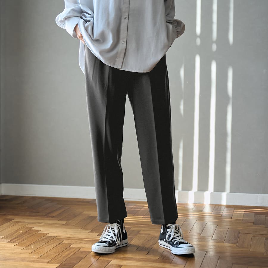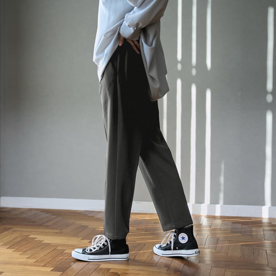 スッキリ見えするテーパードデザインなので、オンスタイルにも対応するキレイ目な見え感。