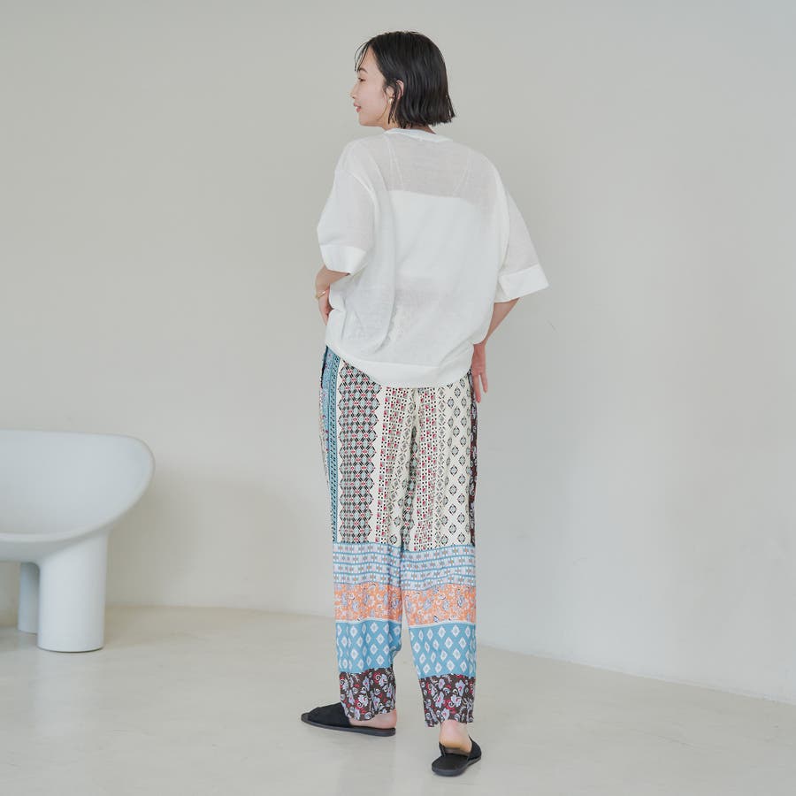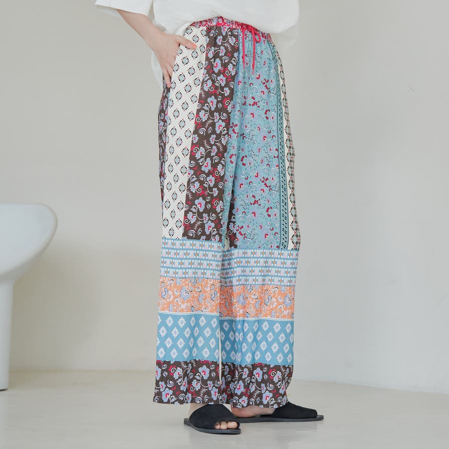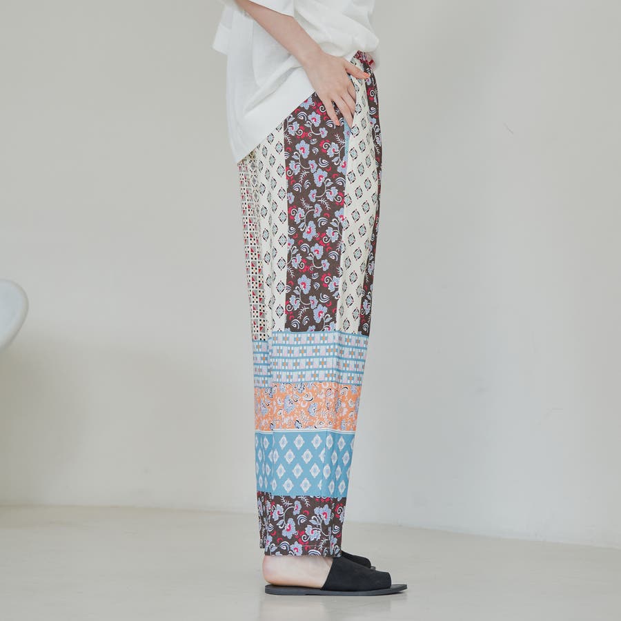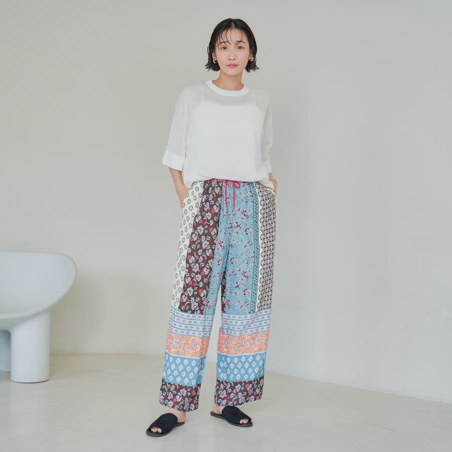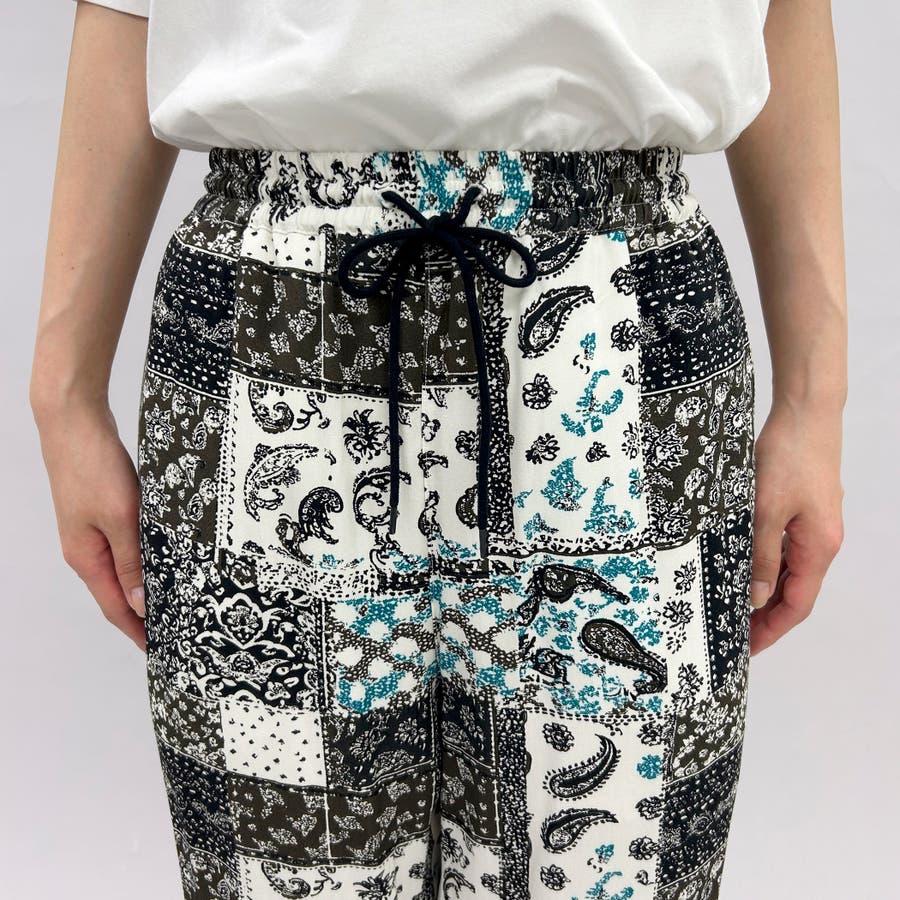 リラクシーなムード漂うパネルプリントが印象的なイージーパンツ。軽やかな素材感とウエストゴム仕様で、ストレスフリーな穿き心地を実現。