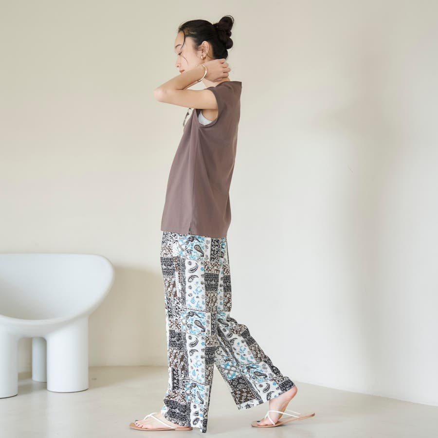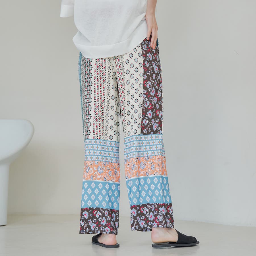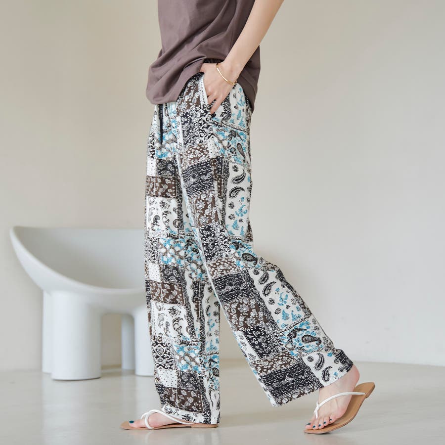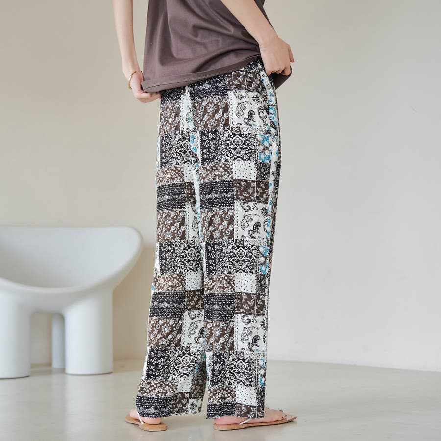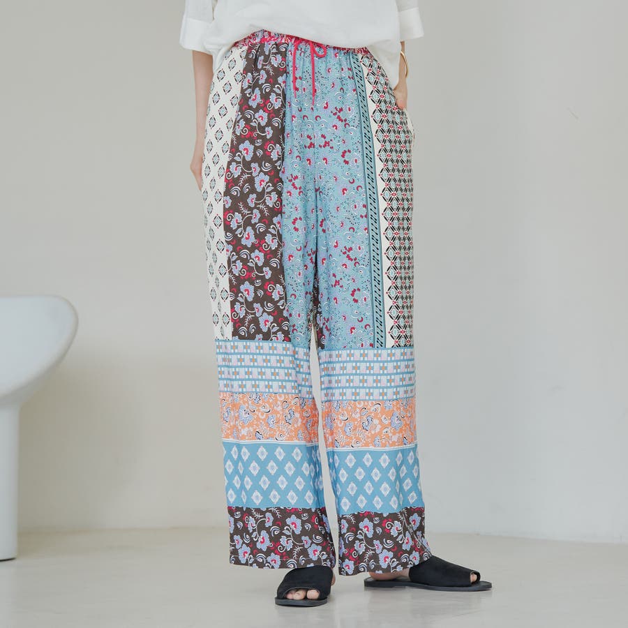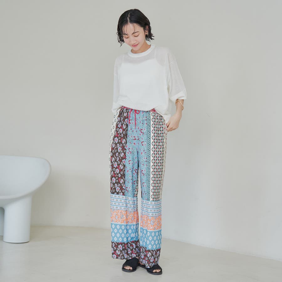 リラクシーなムード漂うパネルプリントが印象的なイージーパンツ。軽やかな素材感とウエストゴム仕様で、ストレスフリーな穿き心地を実現。