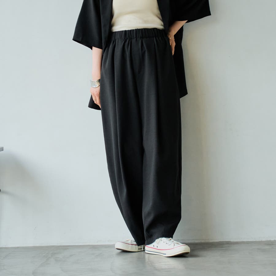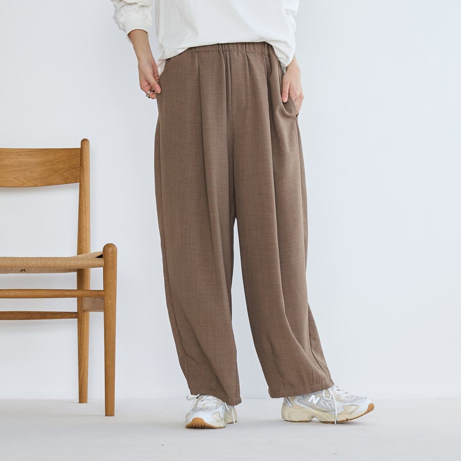 トレンド感のあるバレルシルエットが1枚でコーデを完結させるイージーワイドパンツ。