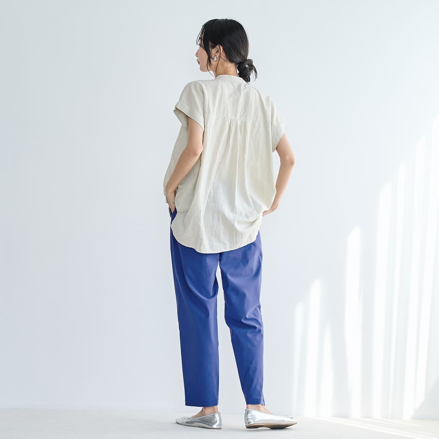 オールシーズン活躍する適度な厚みに、スタイリング次第でカジュアルにも上品にも印象を変えてくれる、汎用性のあるさらっとした素材感です。