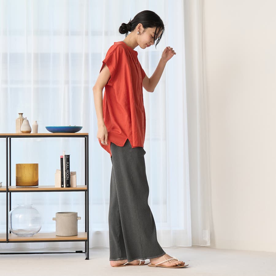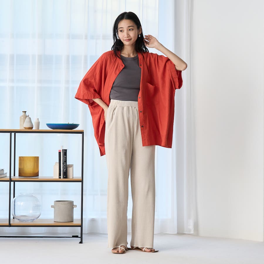 リブ素材の縦ラインが美しく、シンプルなTシャツやスウェットはもちろん、シャツやブラウスとも好相性◎