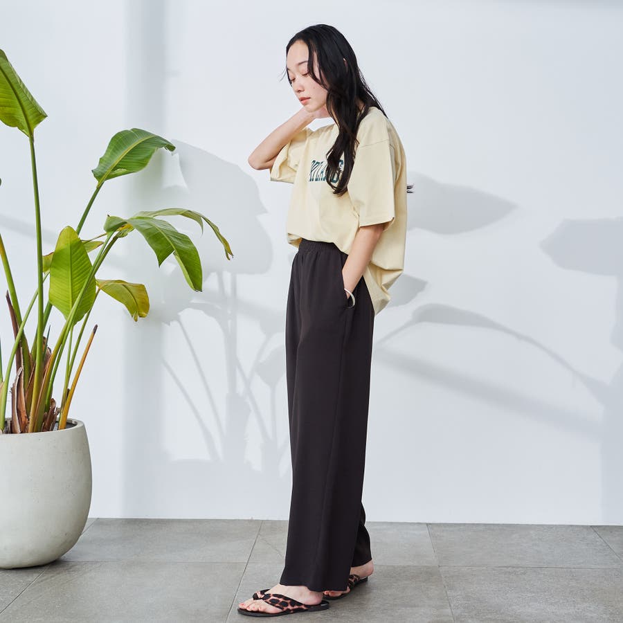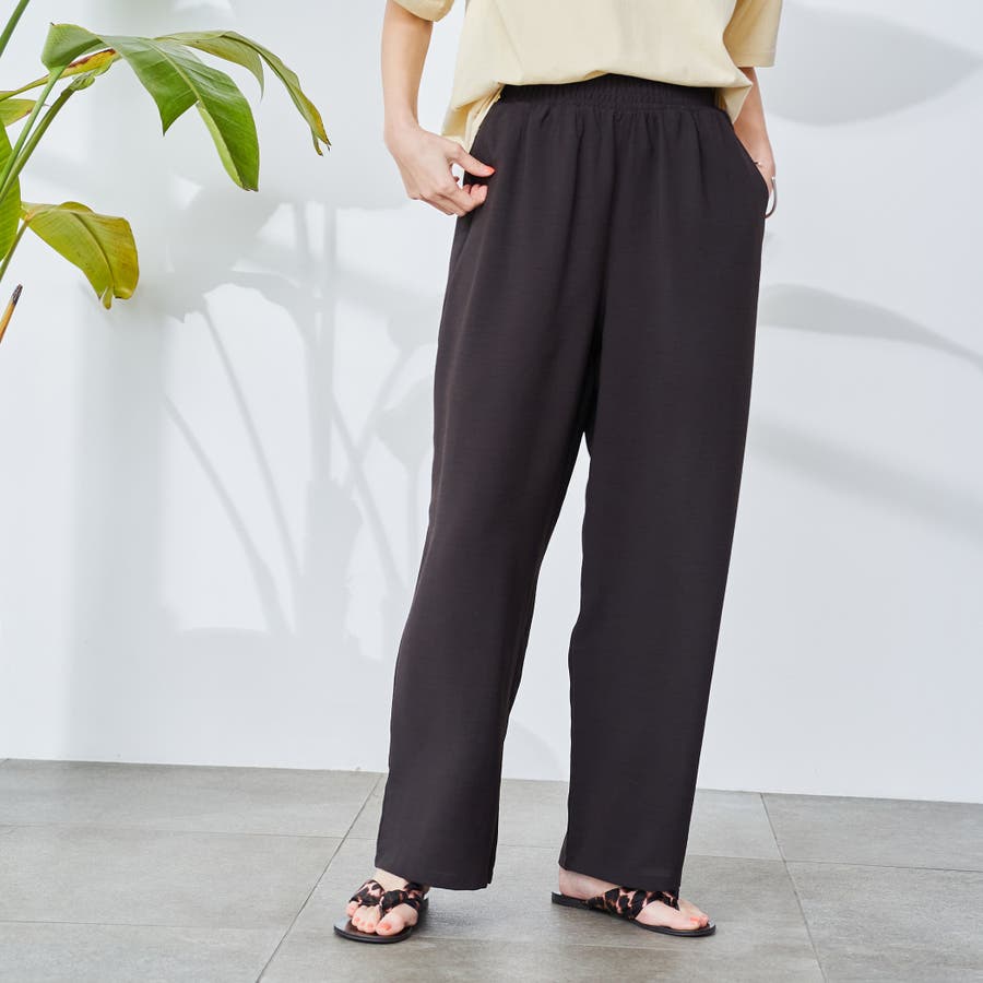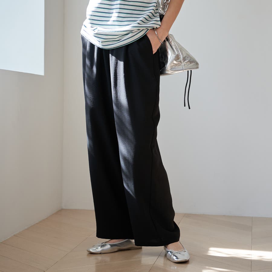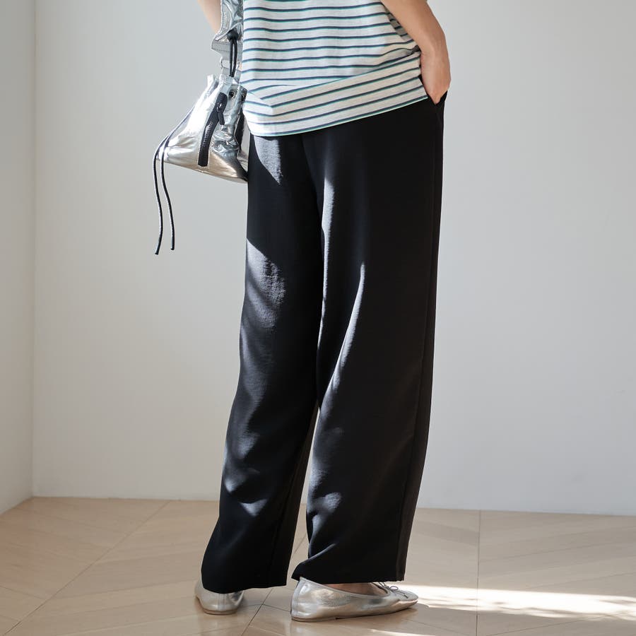 ワッシャー感のある素材ながら、上品できれいめな印象に仕上げたイージーワイドパンツ。