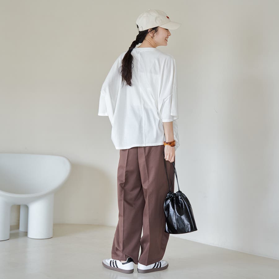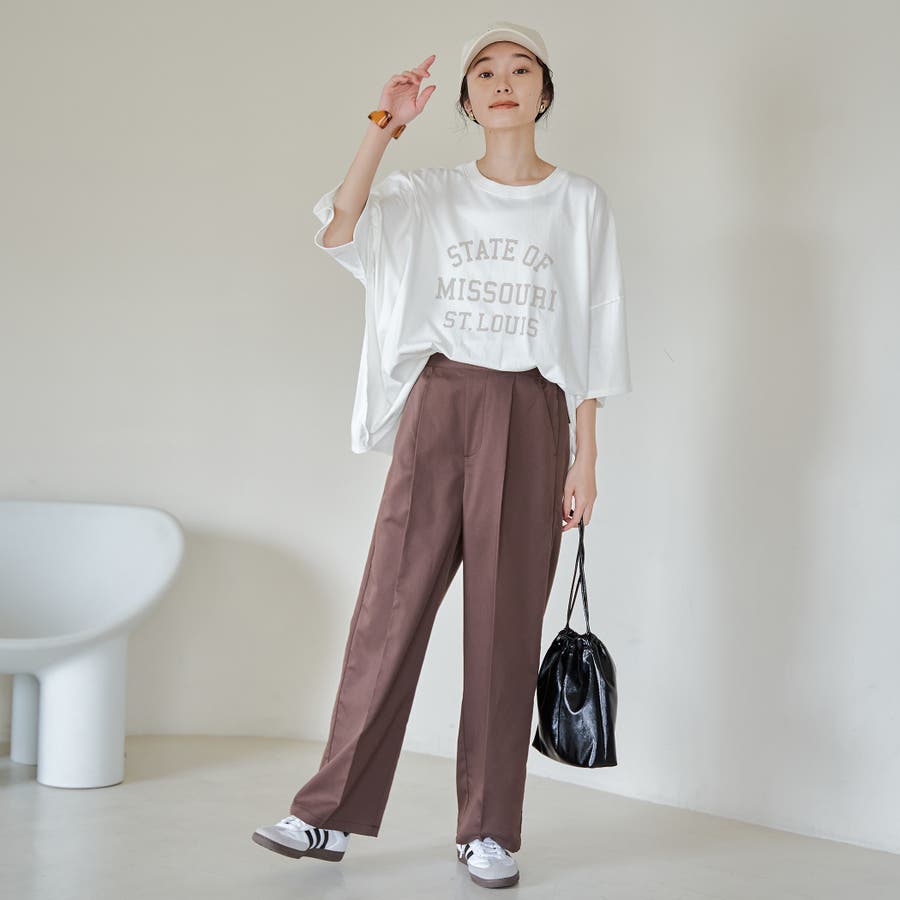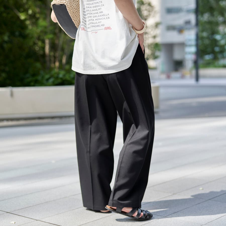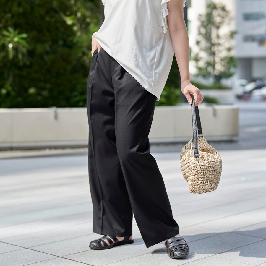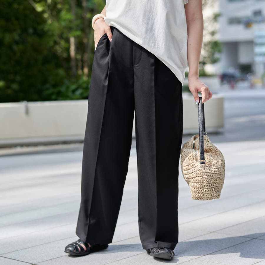 ほどよいボリューム感でバランスの取りやすいワイドシルエットに、センタープレスを効かせてすっきり見え。
