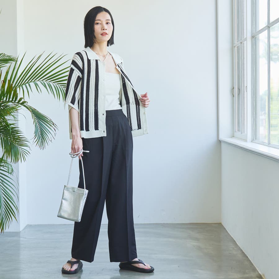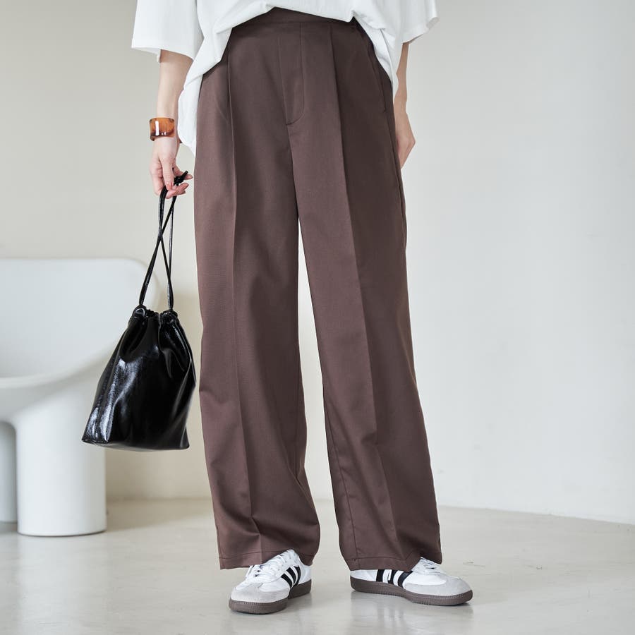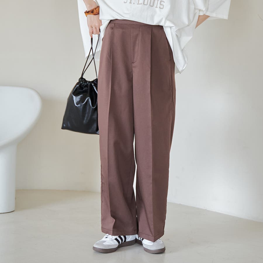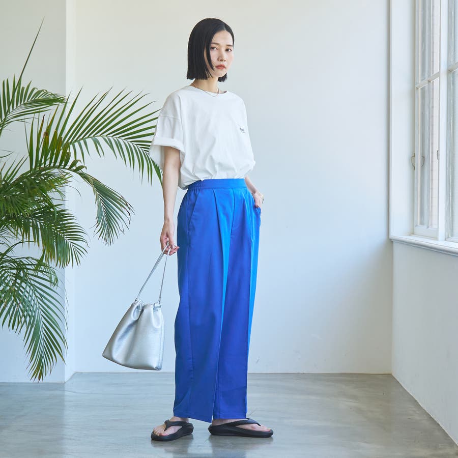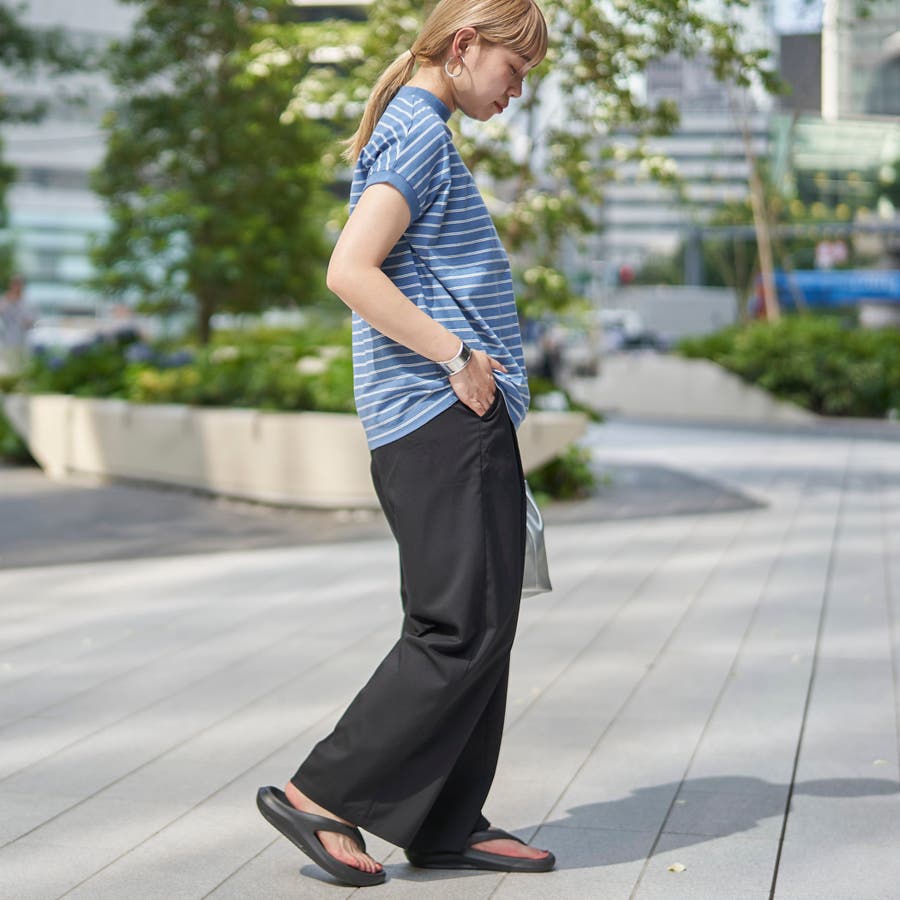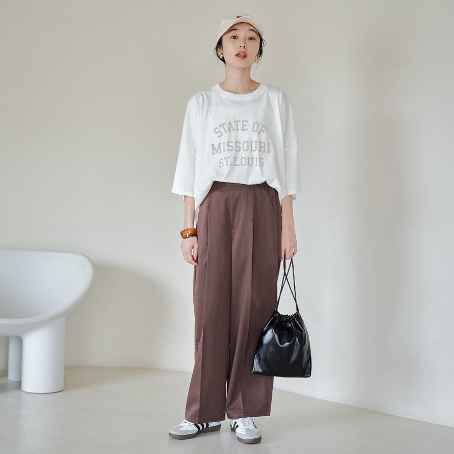 ほどよいボリューム感でバランスの取りやすいワイドシルエットに、センタープレスを効かせてすっきり見え。