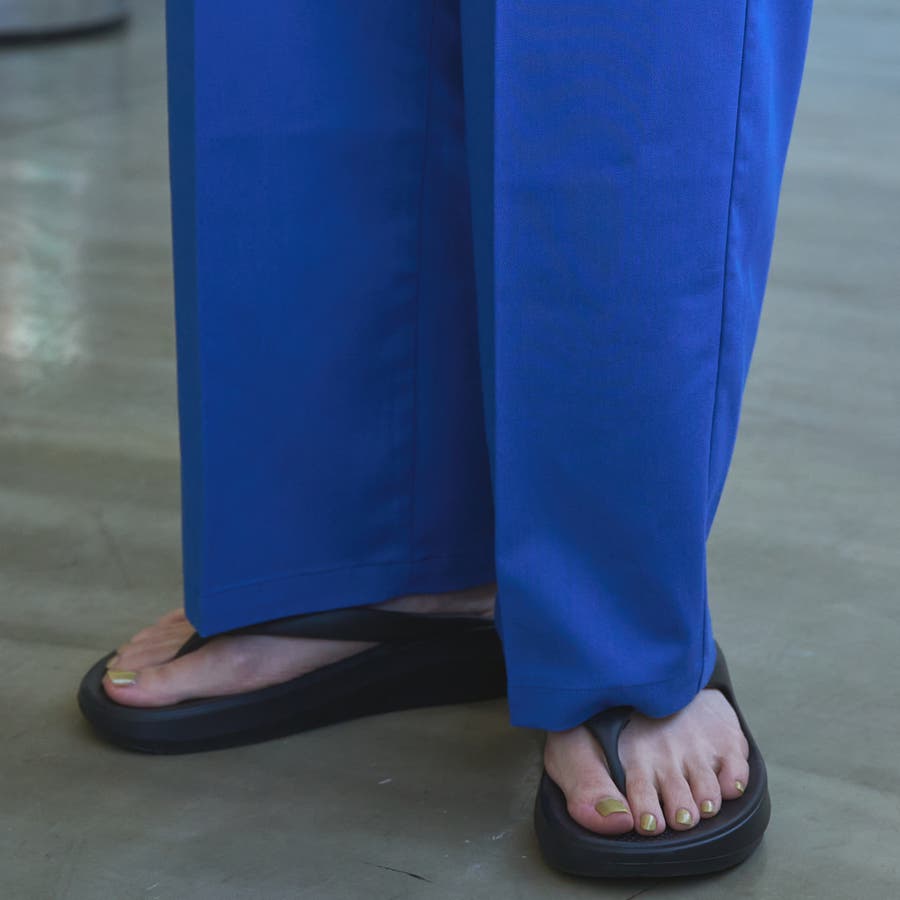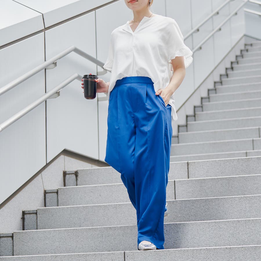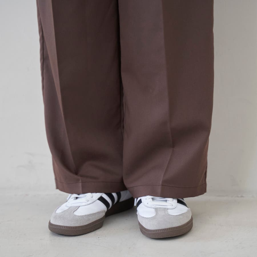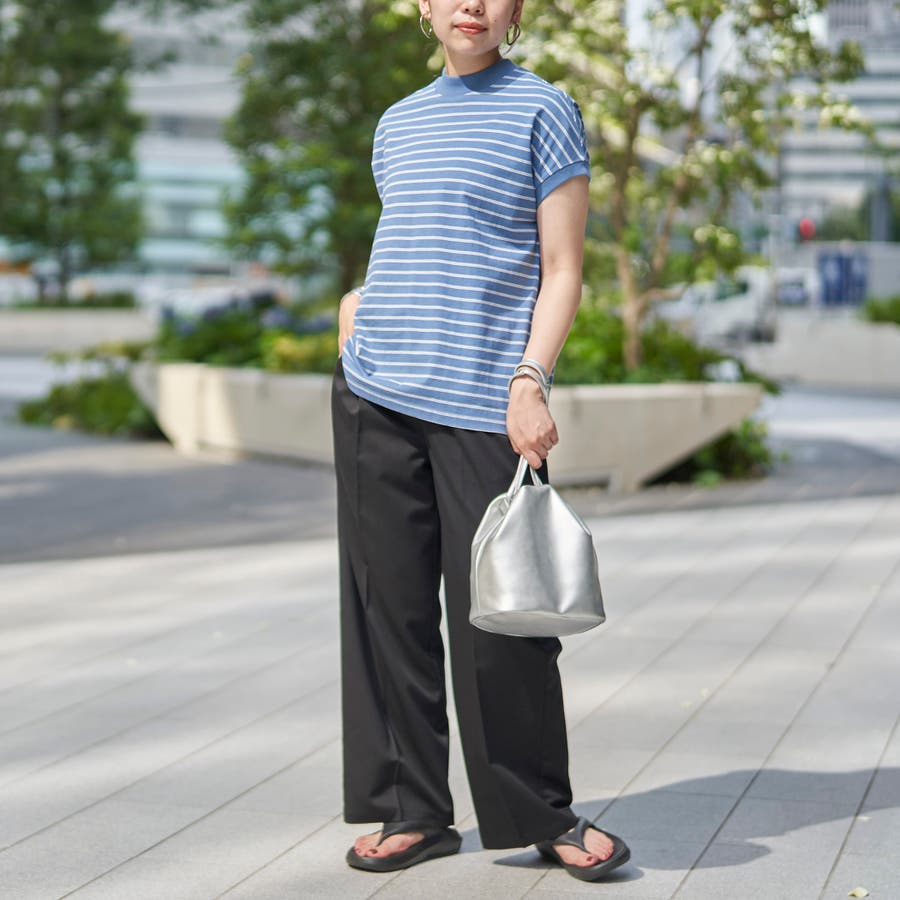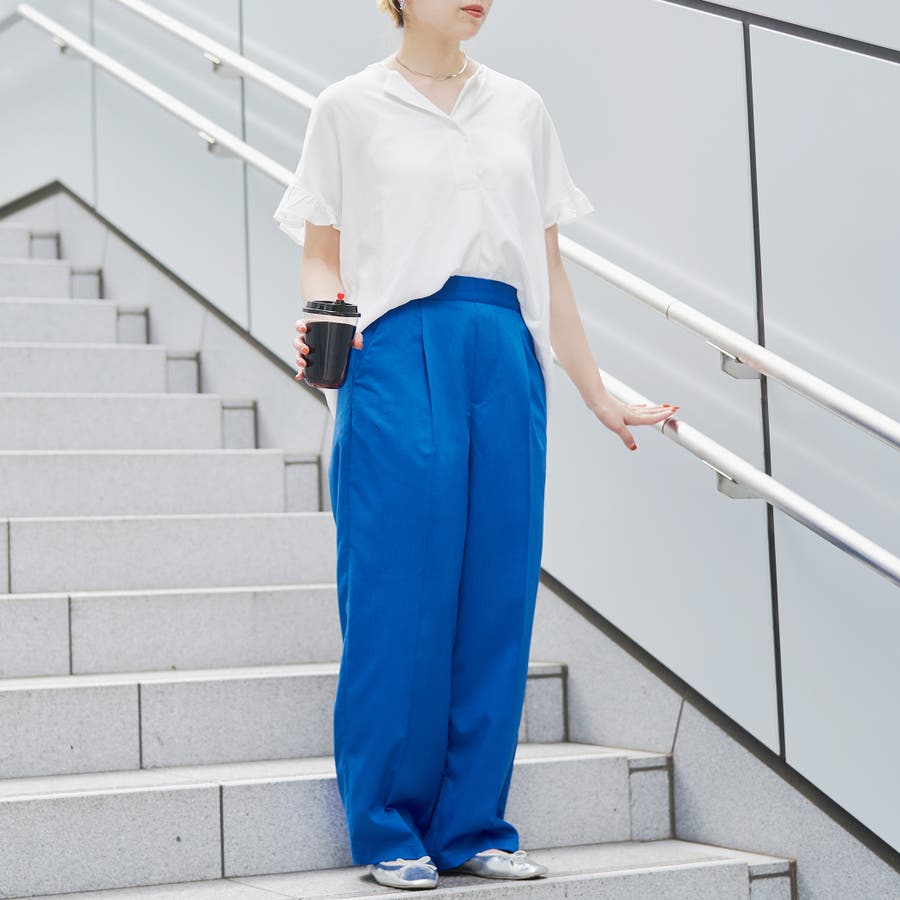 ほどよいボリューム感でバランスの取りやすいワイドシルエットに、センタープレスを効かせてすっきり見え。