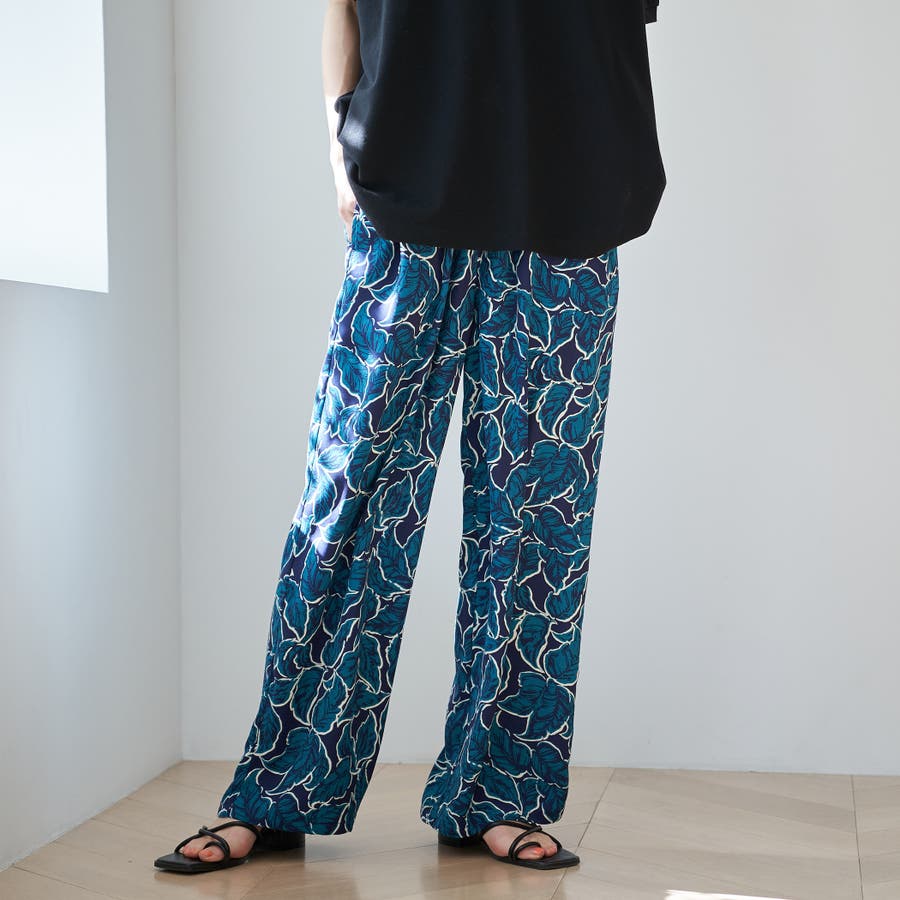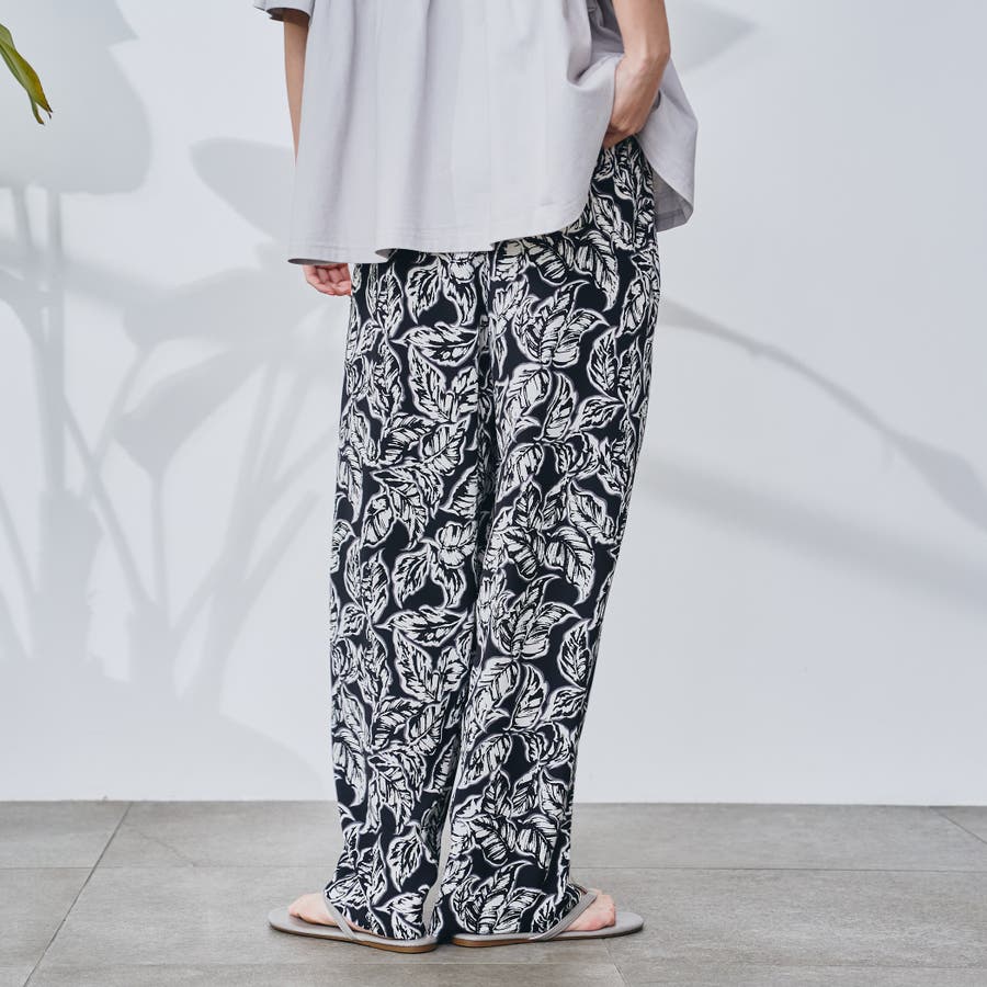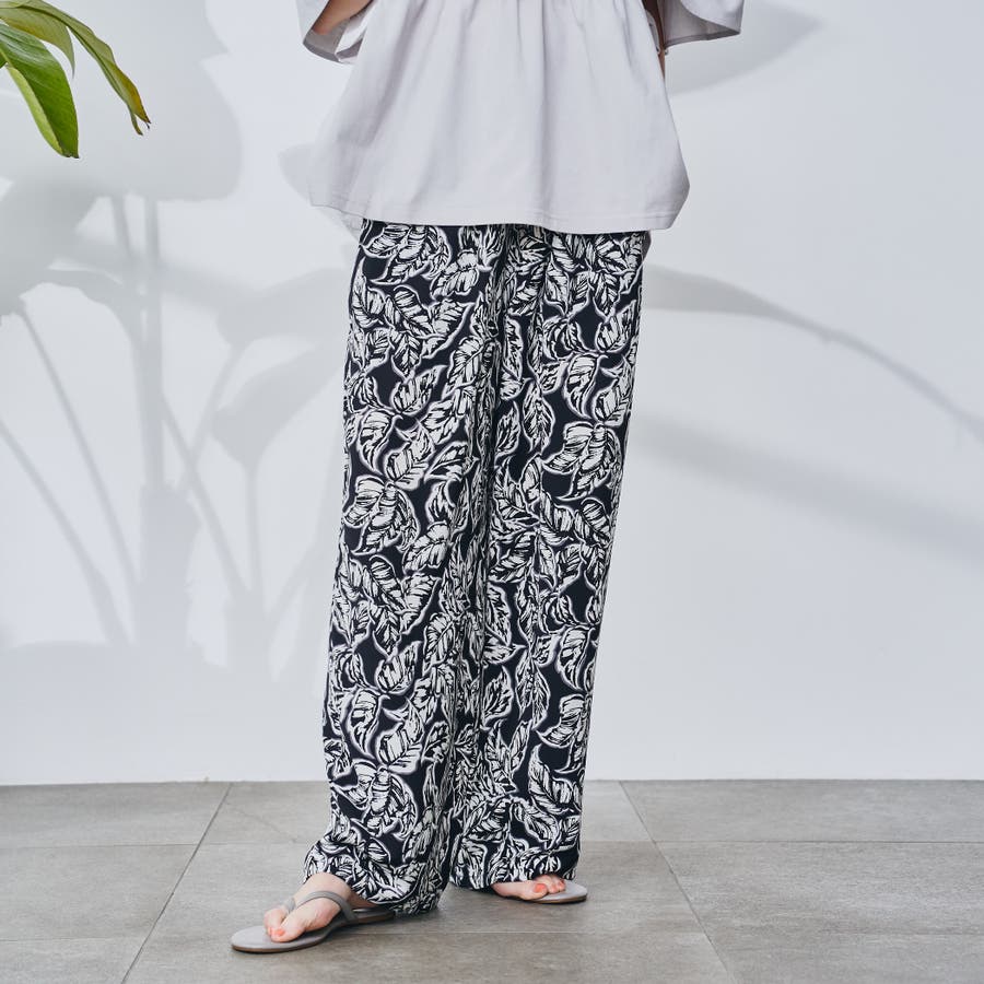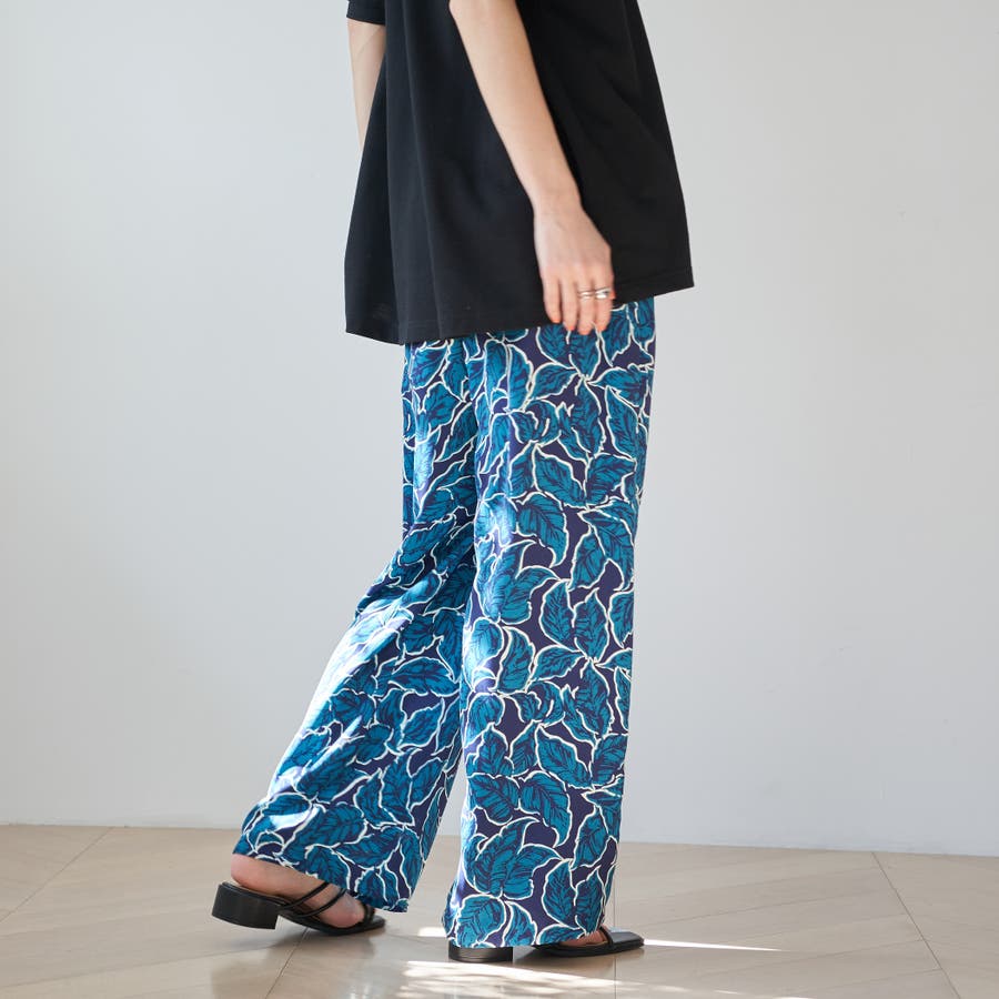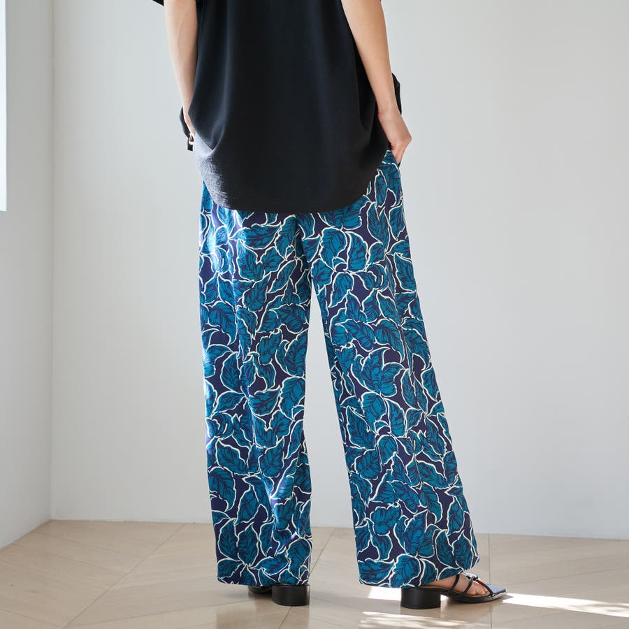 リーフプリントイージーワイドパンツ