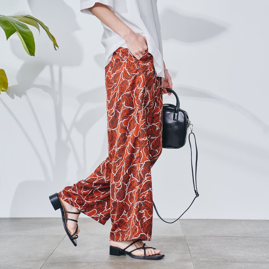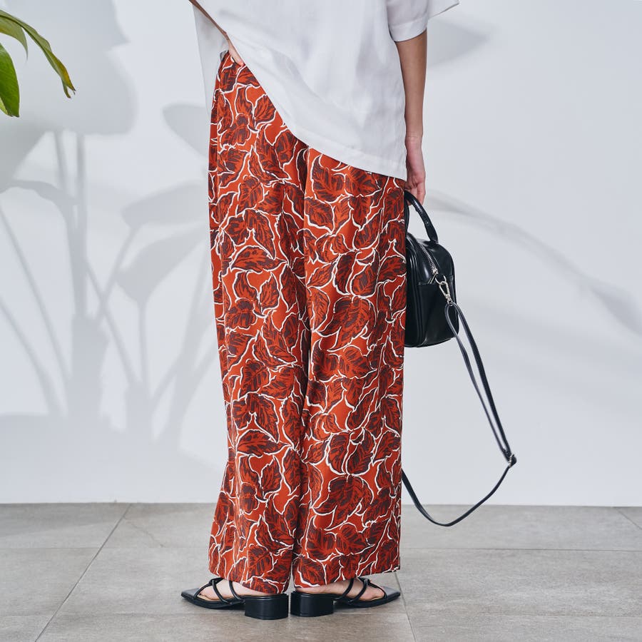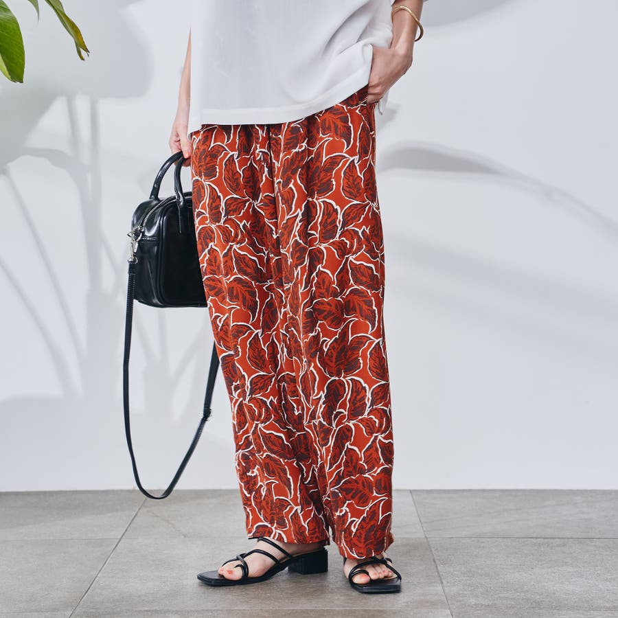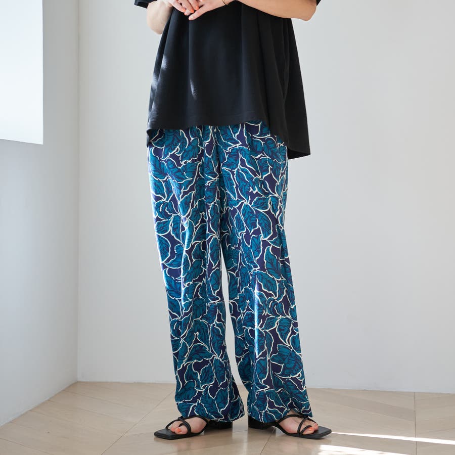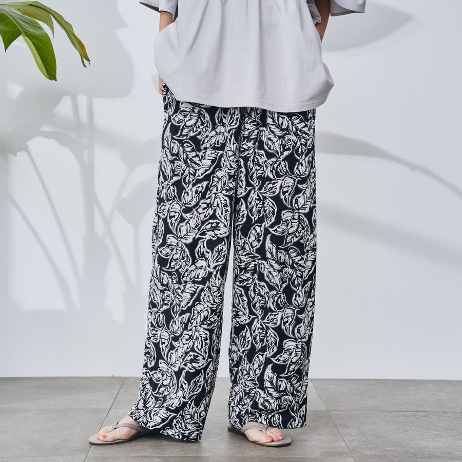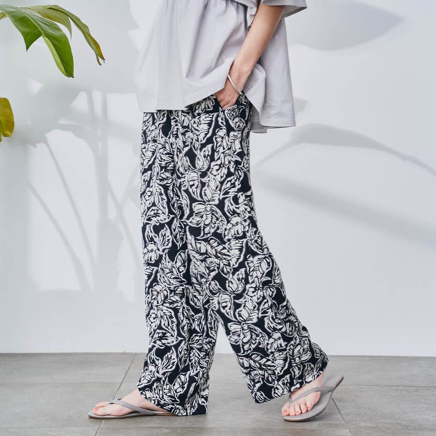 リーフプリントイージーワイドパンツ