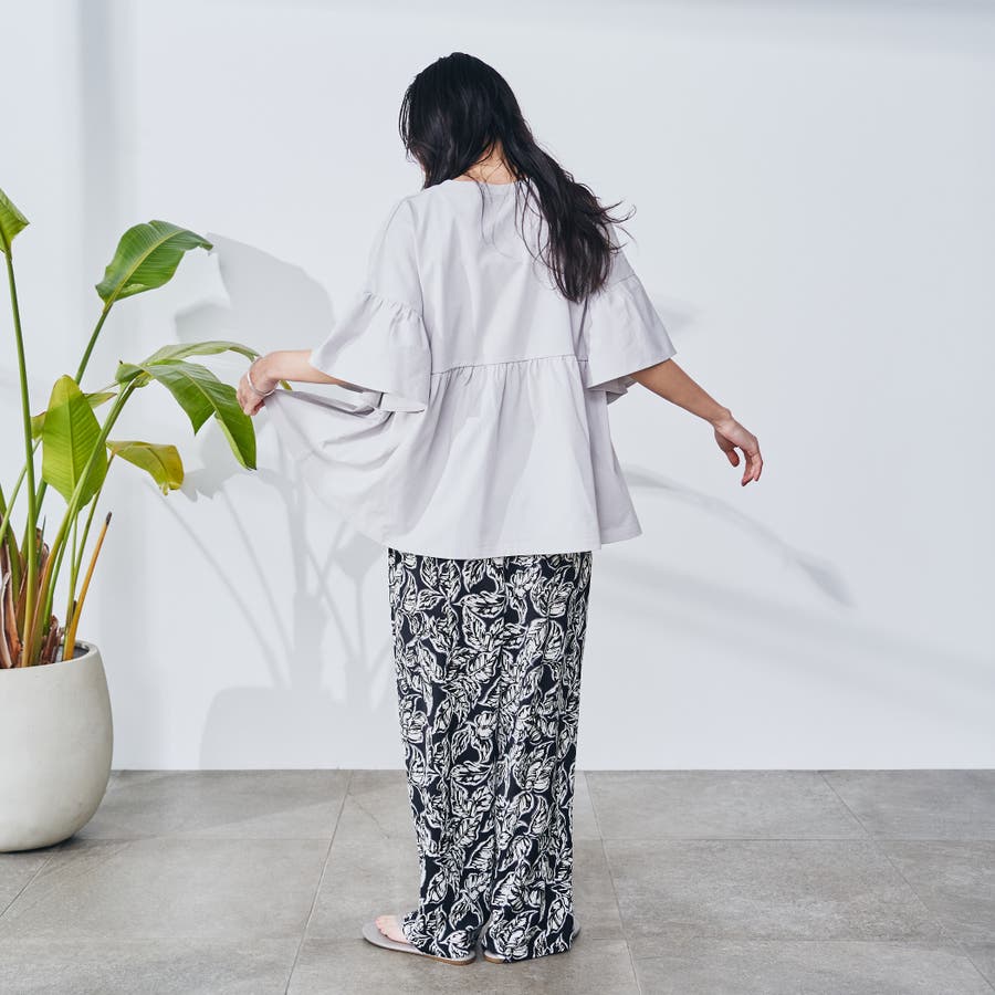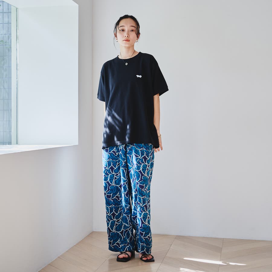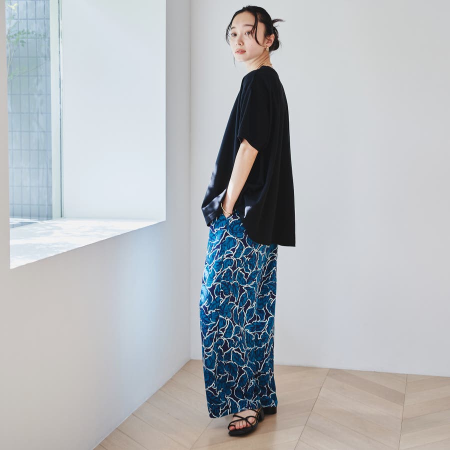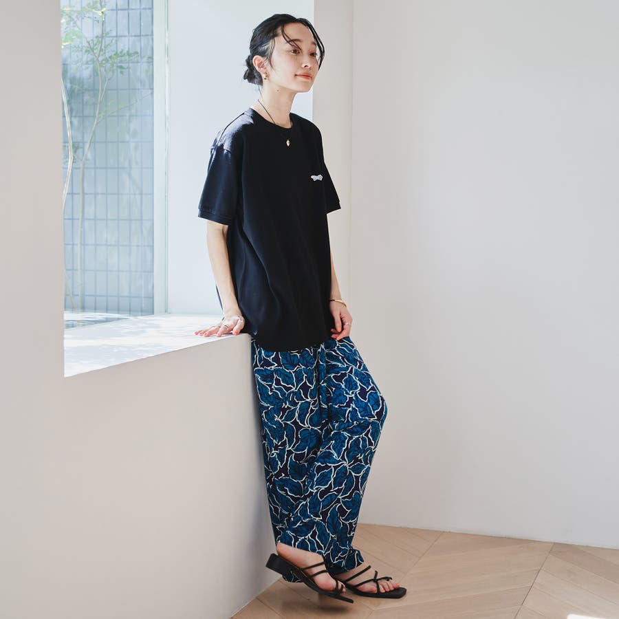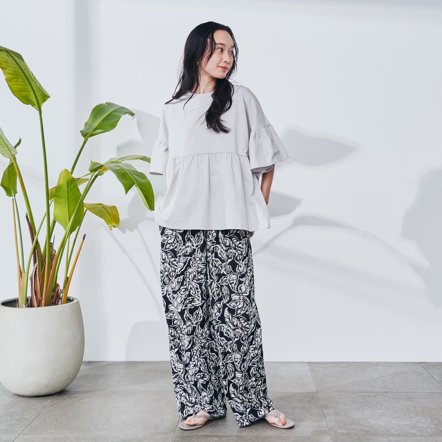 リーフプリントイージーワイドパンツ