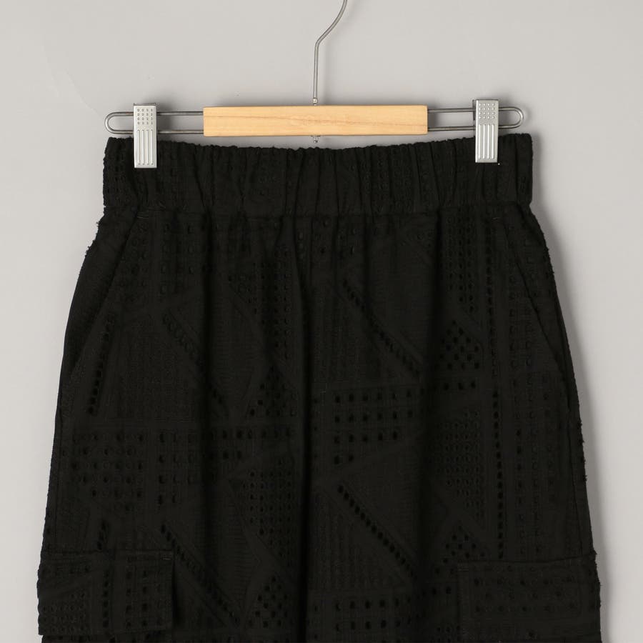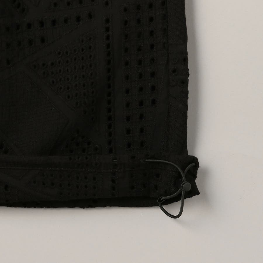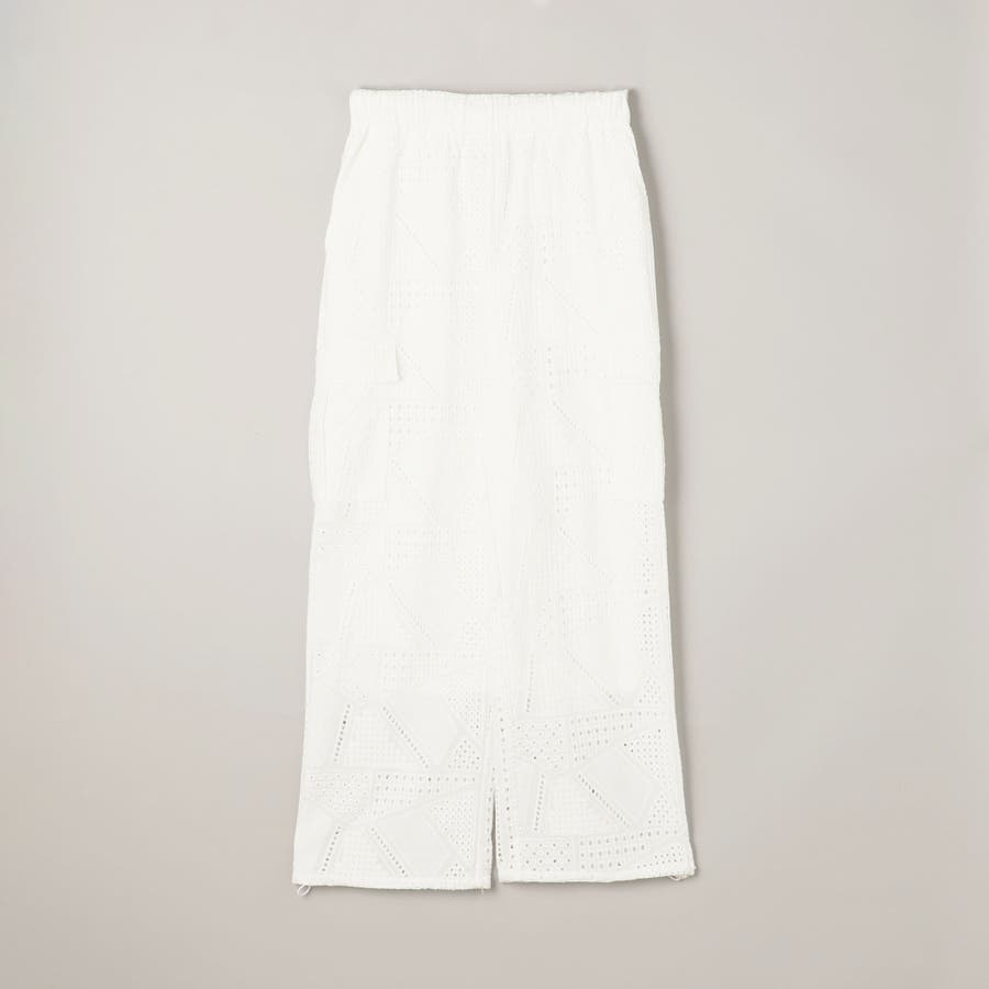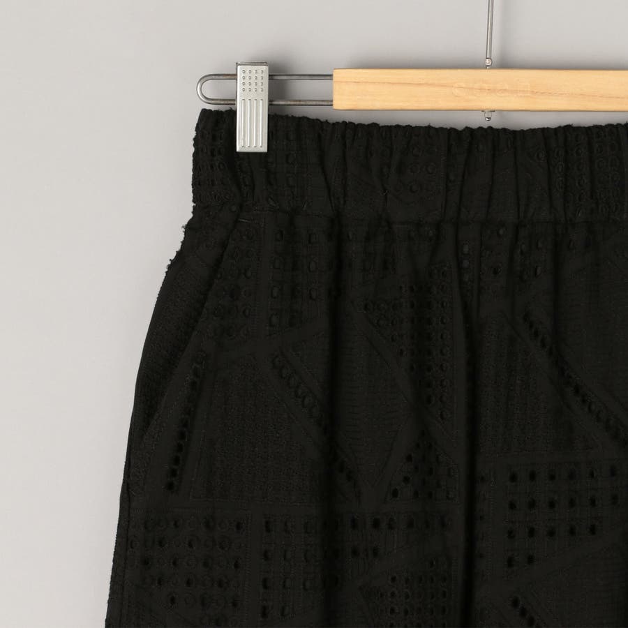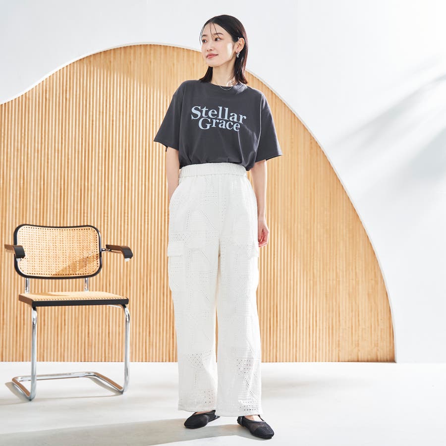 ●シャツと同素材のエンブロイダリーレースを使用した、セットアップでも楽しめるカーゴパンツ