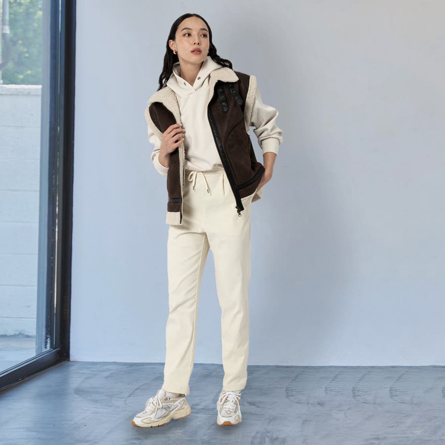今シーズンは、ジョガーのような見え感が軽減した緩めのテーパードなので、ショートブーツ合わせも違和感なく取り入れて頂けます。