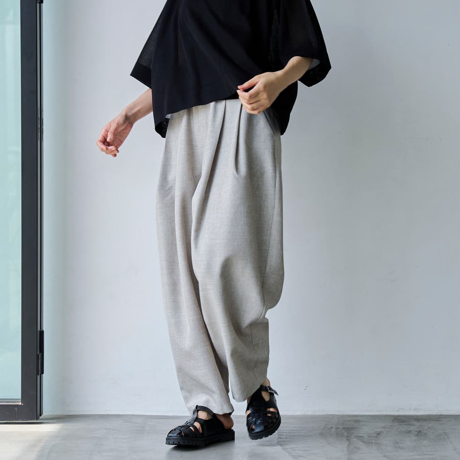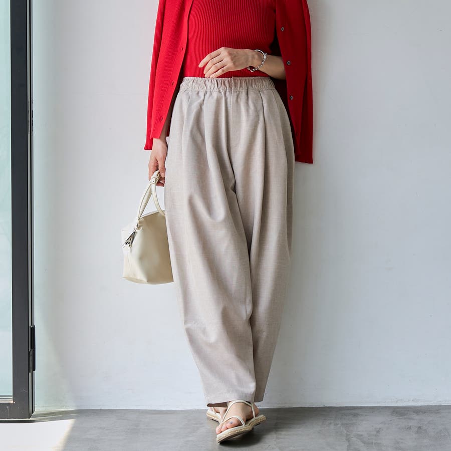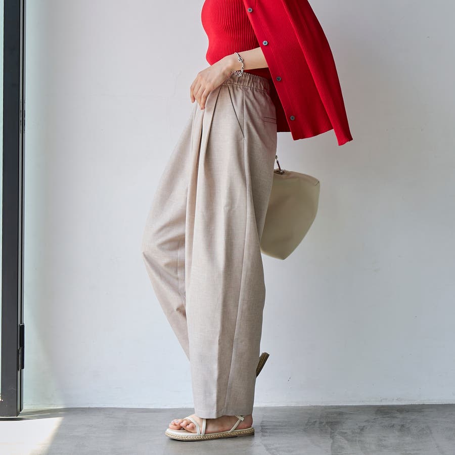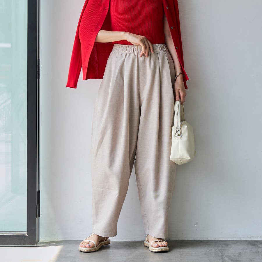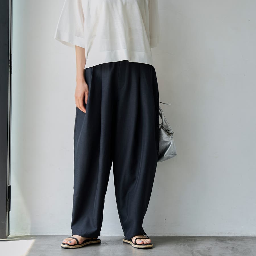 今季らしいたっぷりタックの入ったボリュームバルーンパンツ
