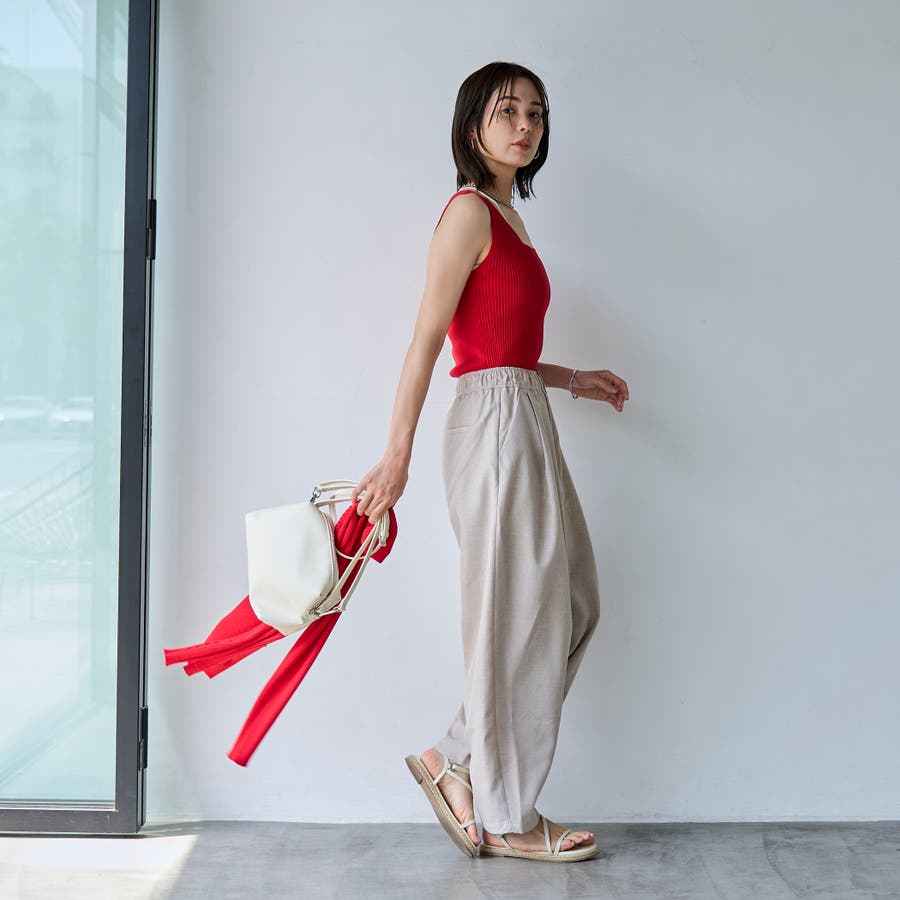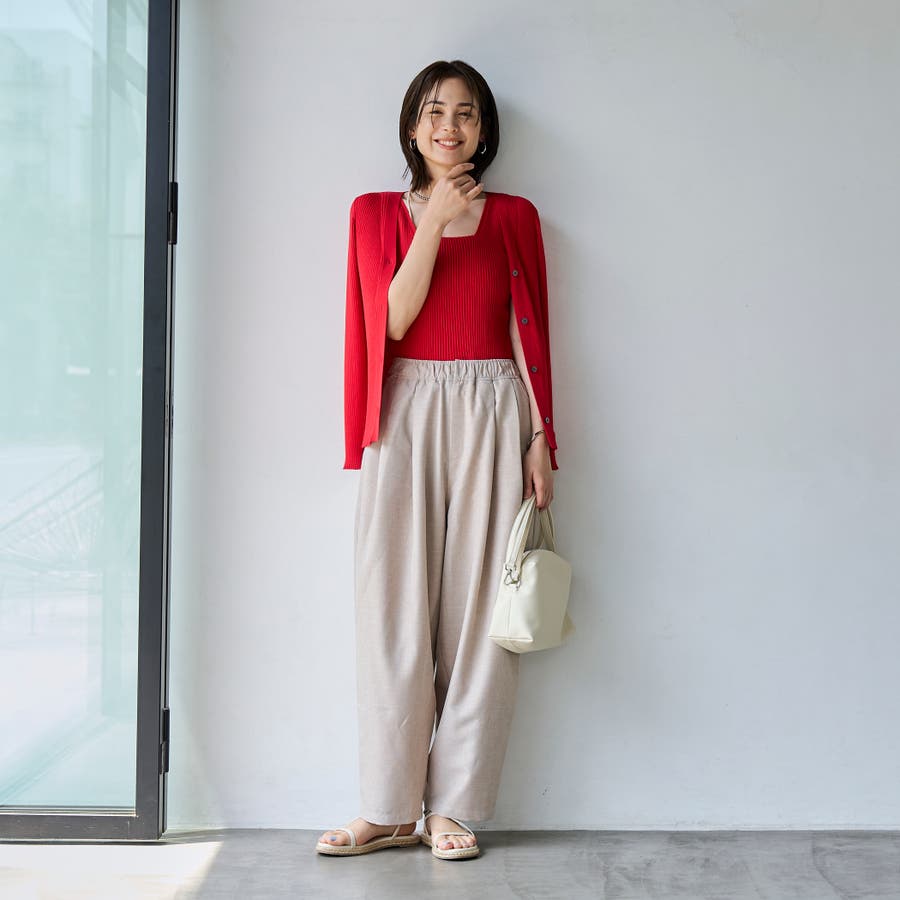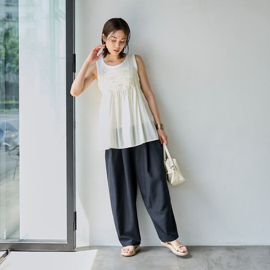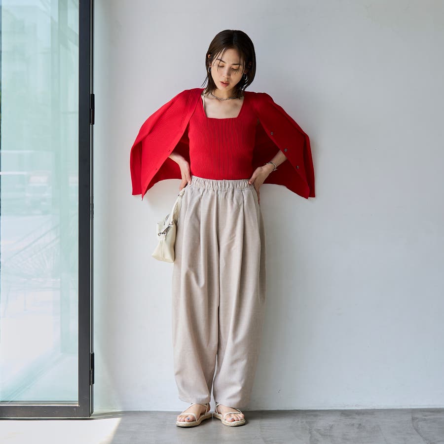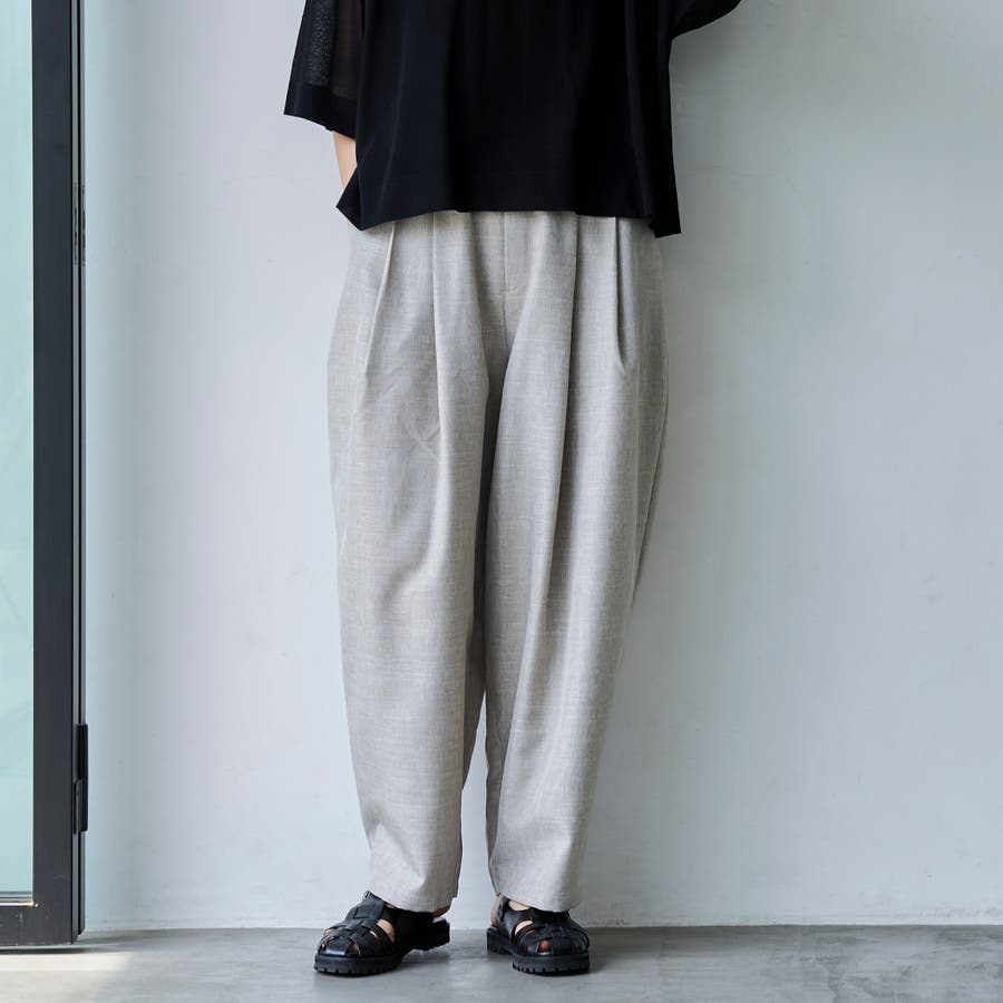 今季らしいたっぷりタックの入ったボリュームバルーンパンツ