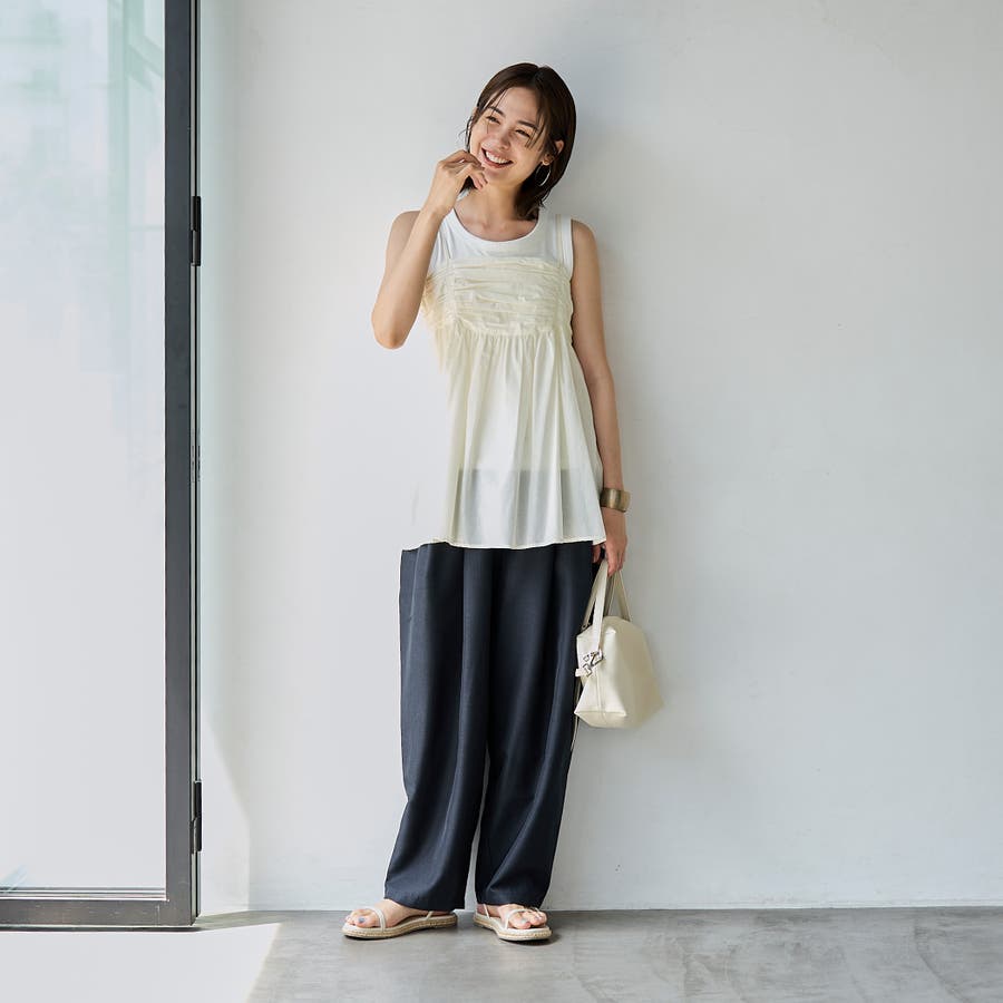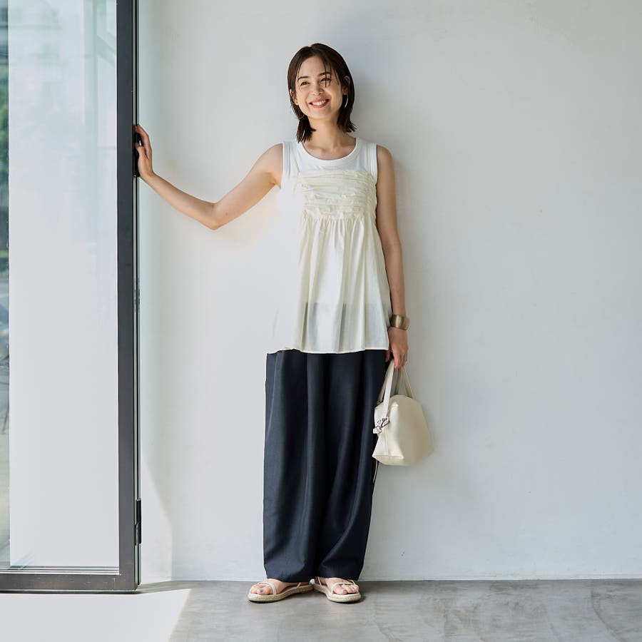 清涼感のある生地で仕上げ、デイリーコーディネートにはもちろんリゾート着としても適しています。