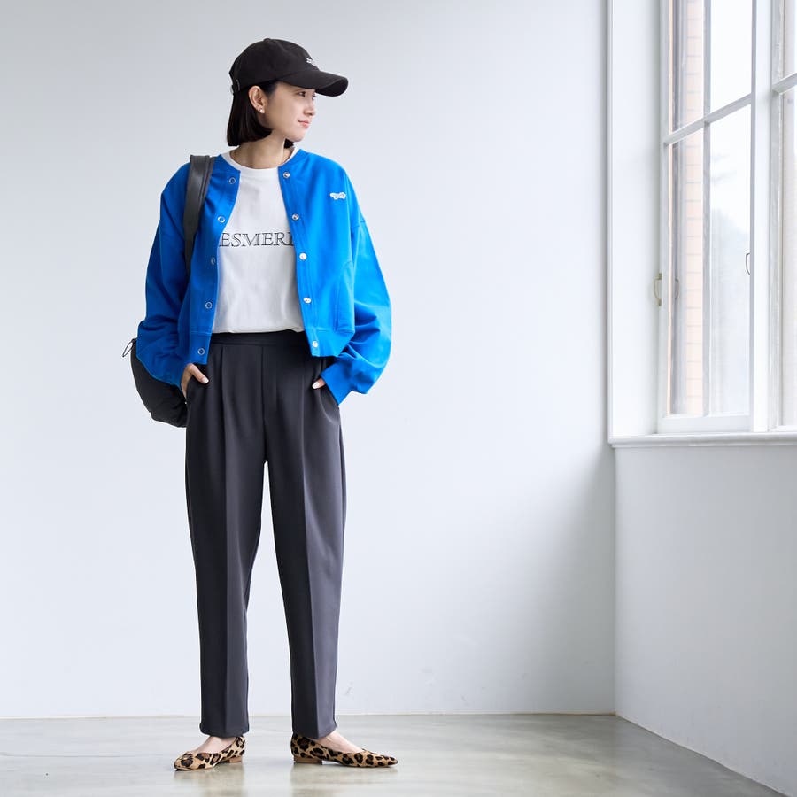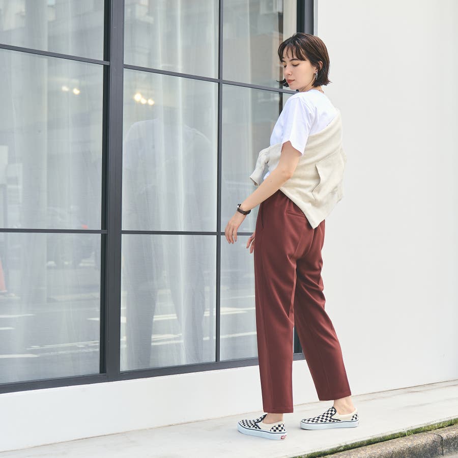 スッキリ見えするテーパードデザインなので、オンスタイルにも対応するキレイ目な見え感。