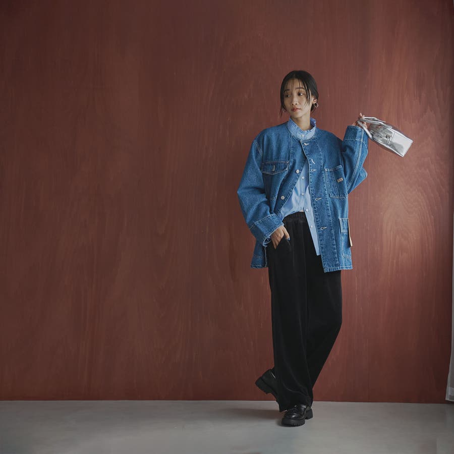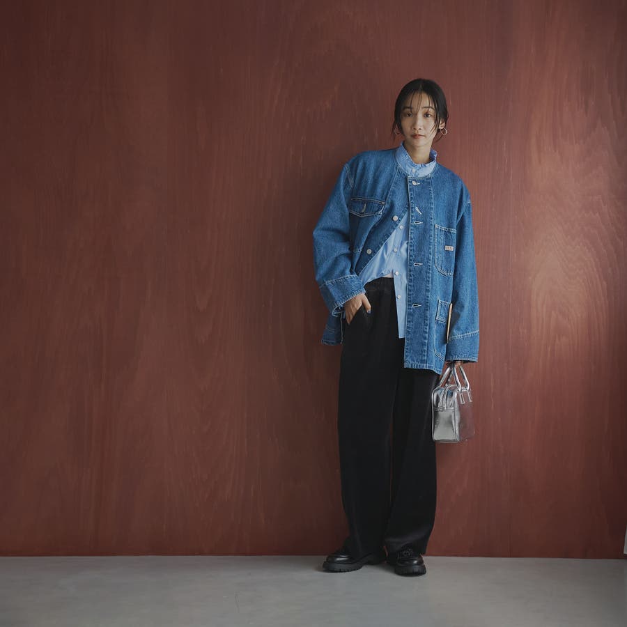 秋冬らしい素材感が際立つシンプルなワイドパンツ