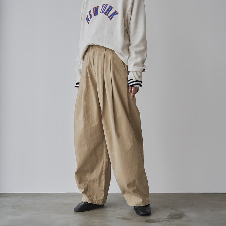 前腰にツータック、裾にダーツを入れたバルーン風シルエットのパンツです。