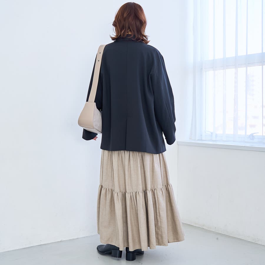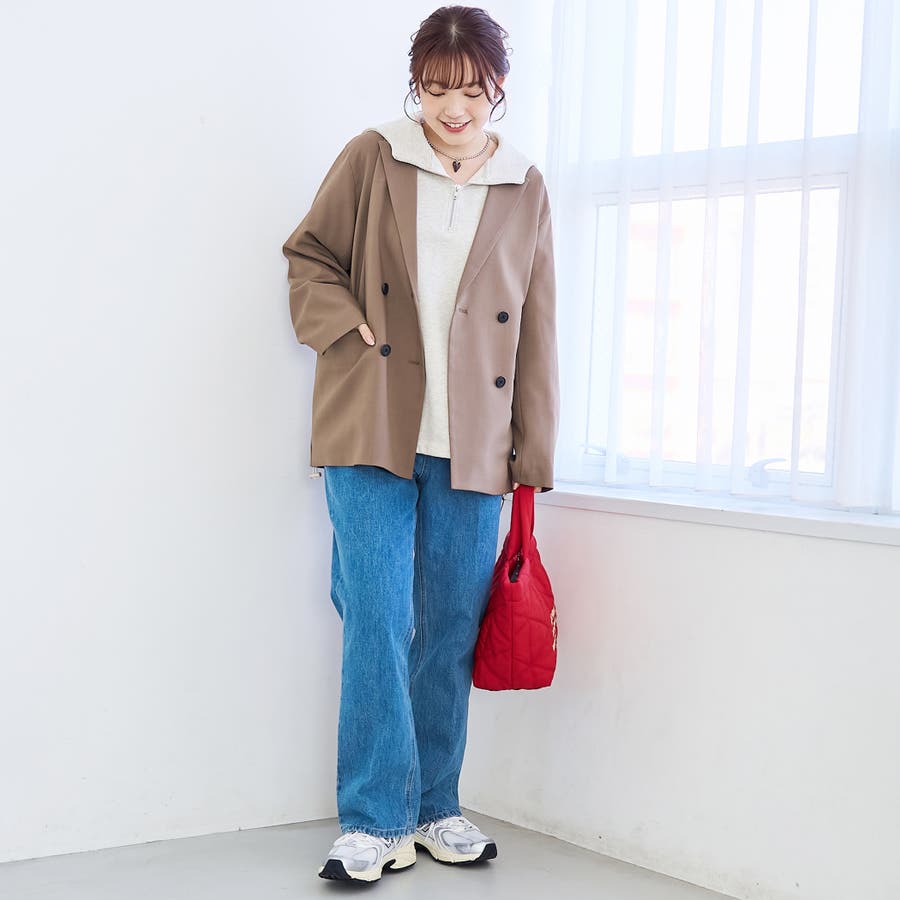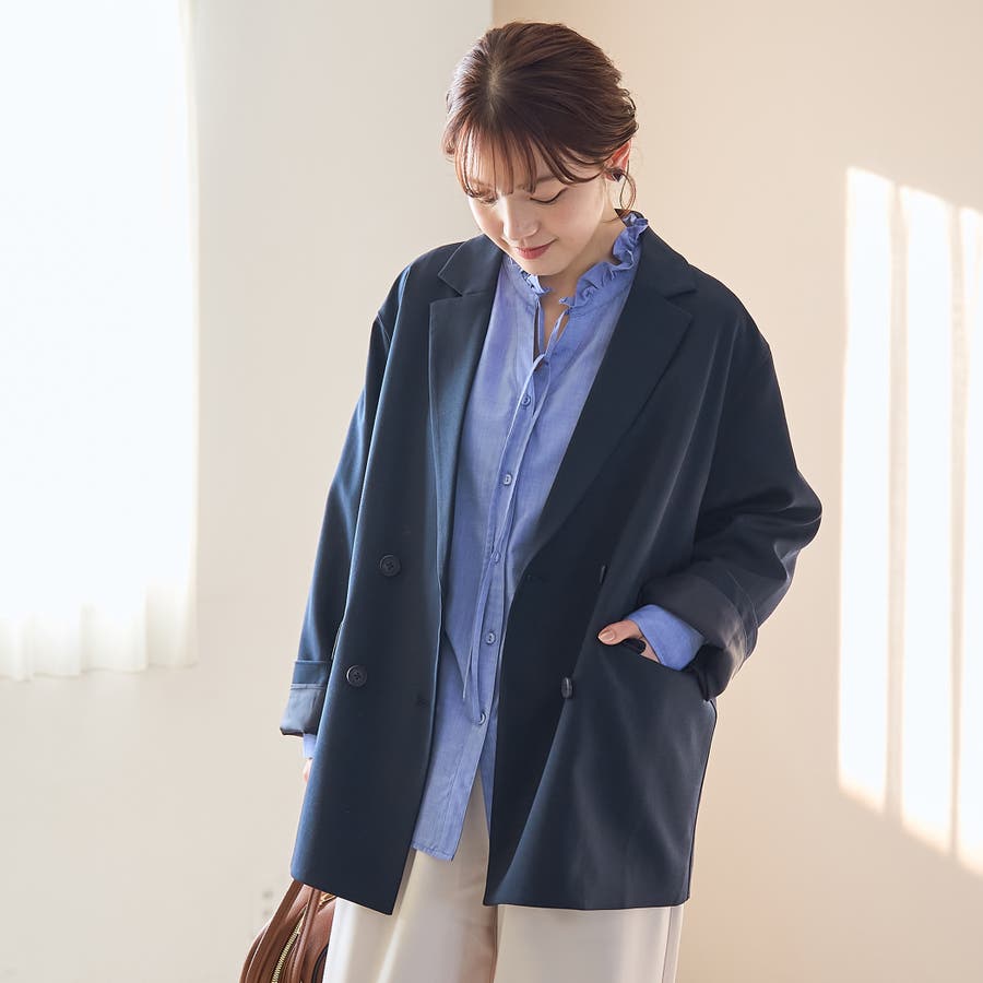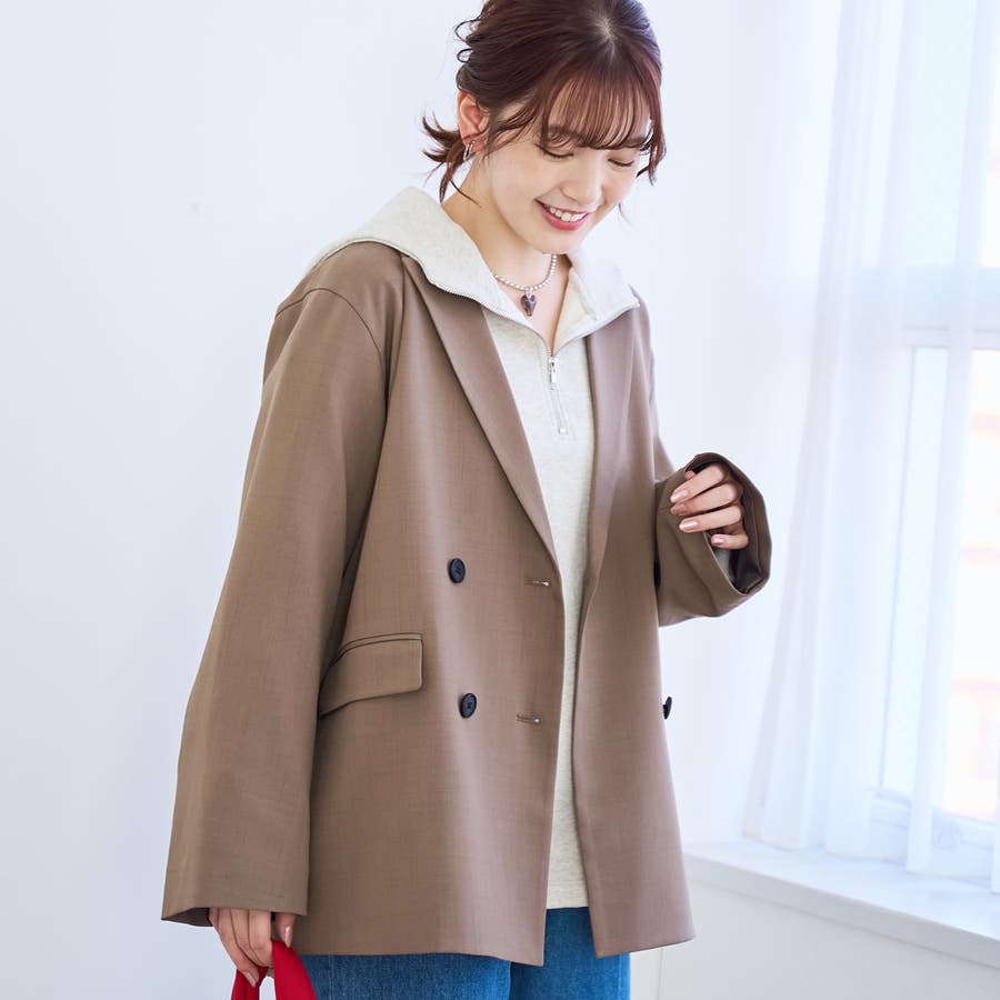〇ゆったりサイジングのダブルブレストデザイン