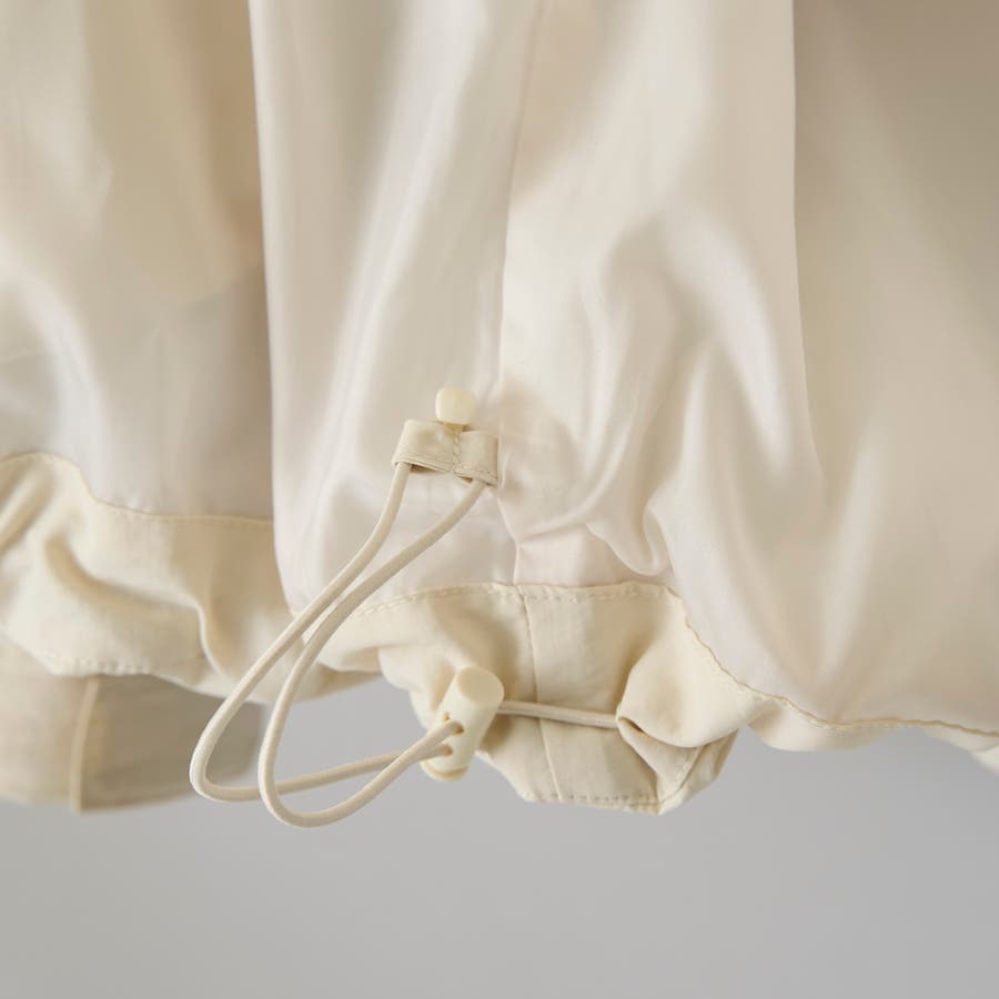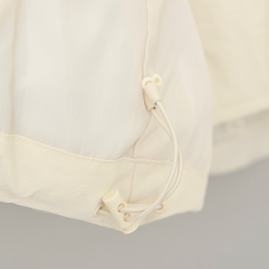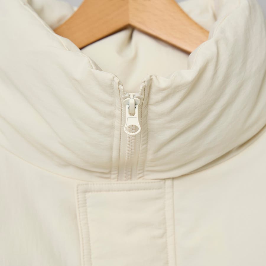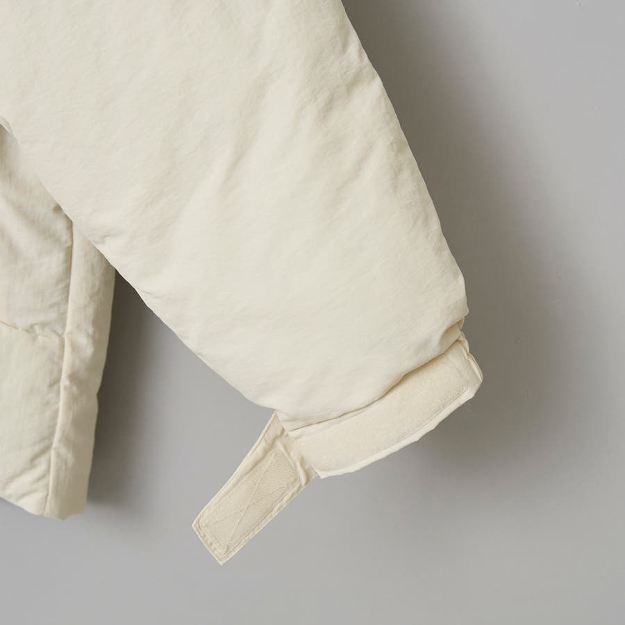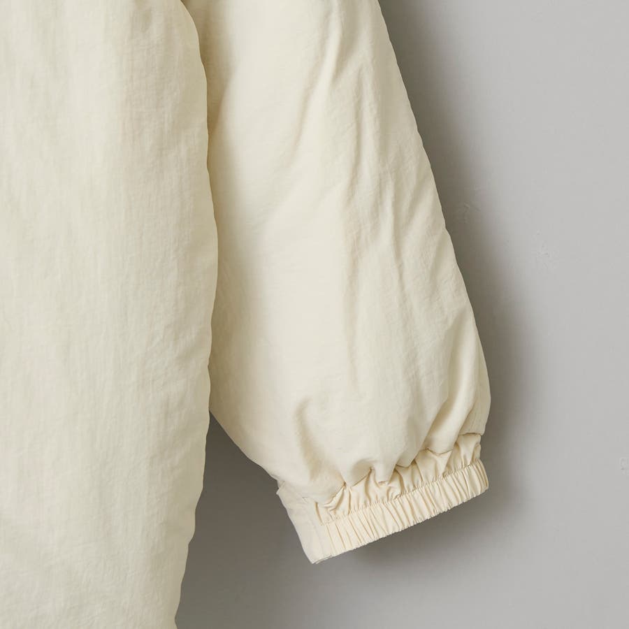 素材感:軽くてやわらかい素材。裾と袖口が絞れるので、冷気を通しにくくあたたかく着られます。
