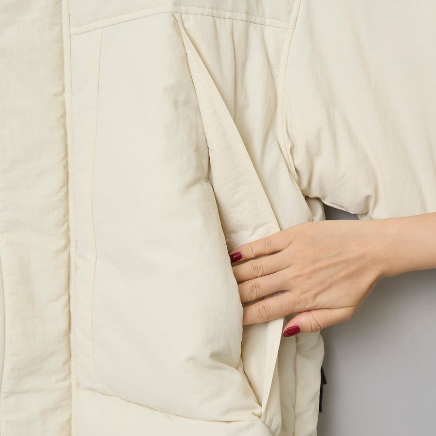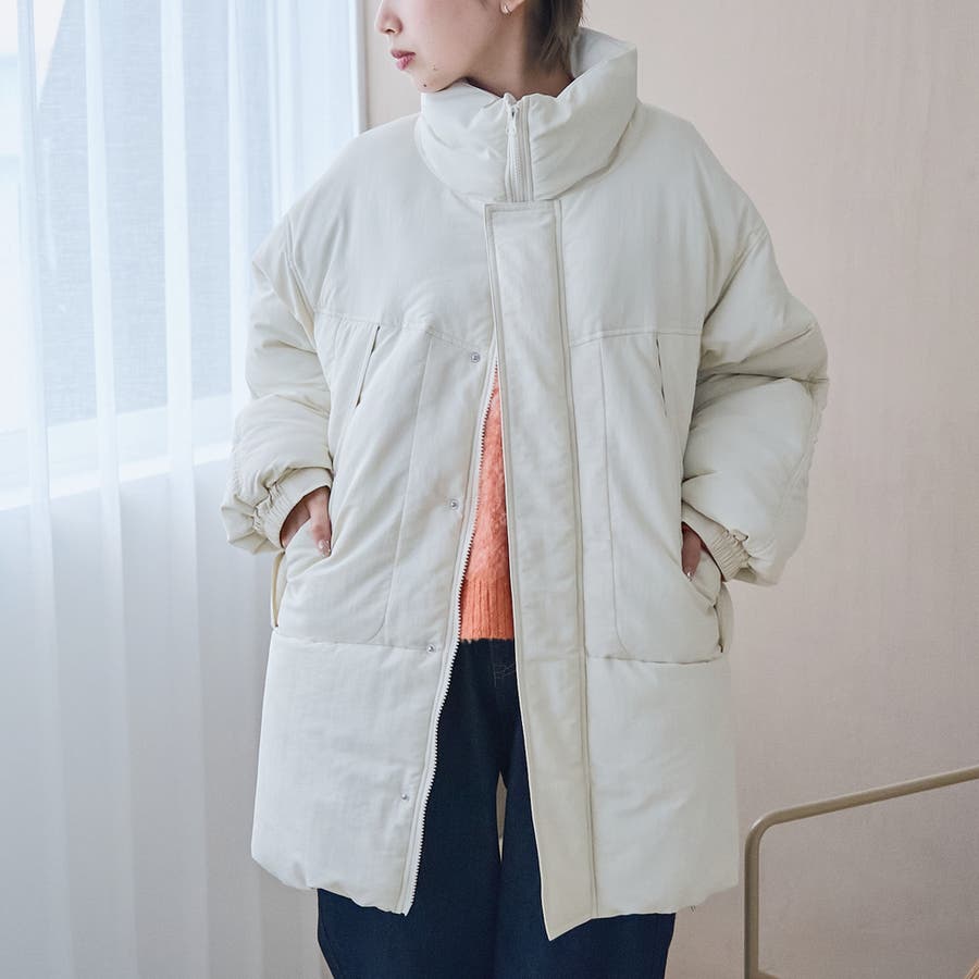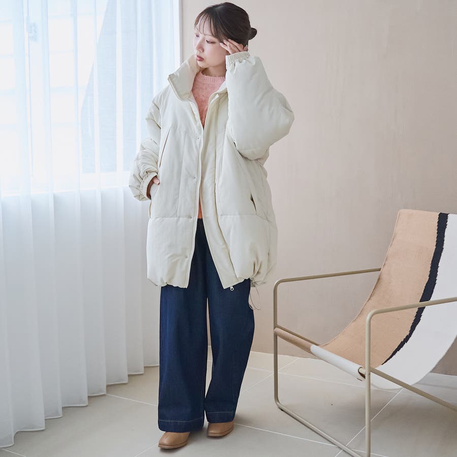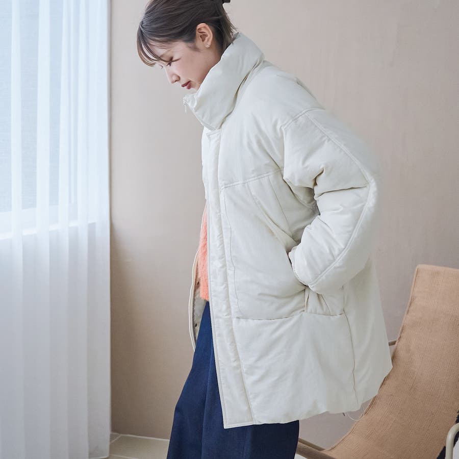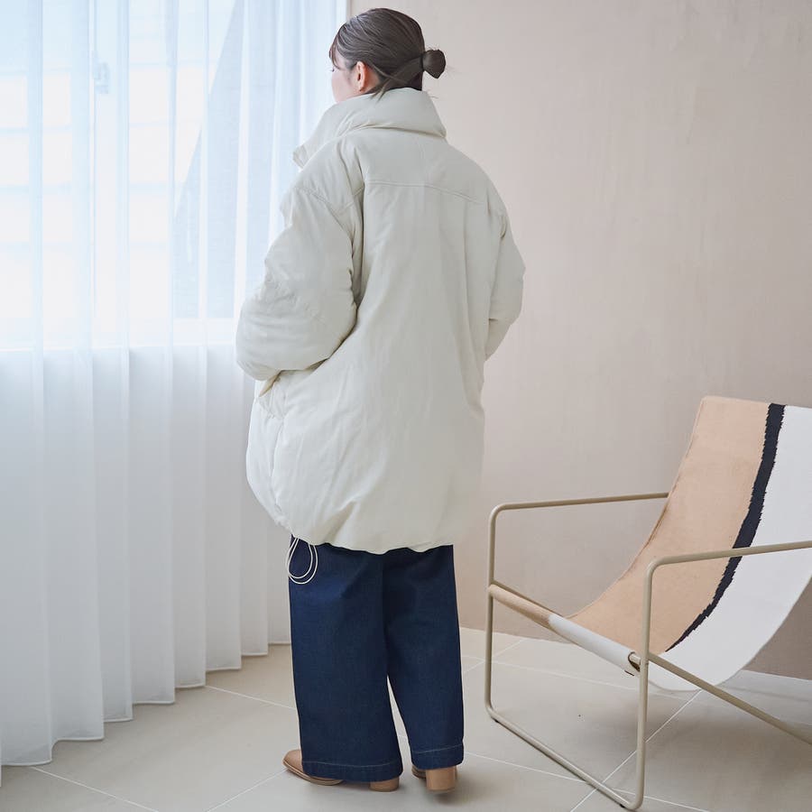 腰回りまでゆったり隠れるシルエットながら、着ぶくれしない中綿分量にこだわったバランスで体型カバーも叶えます。