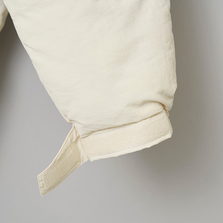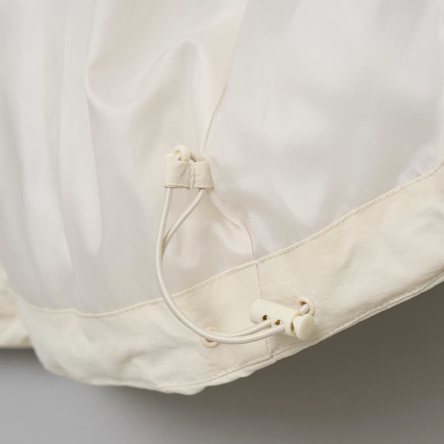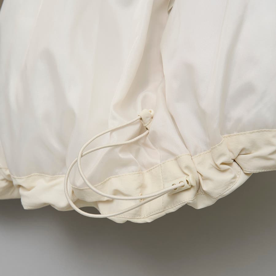 素材感:軽くてやわらかい素材。裾と袖口が絞れるので、冷気を通しにくくあたたかく着られます。