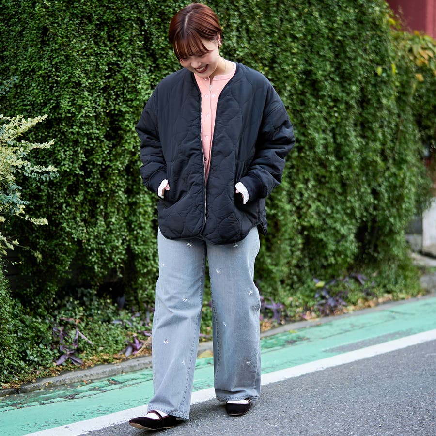 ゆるっとしたサイジングなので、冬時期には厚手のニットなどとのレイヤードも楽しめます。