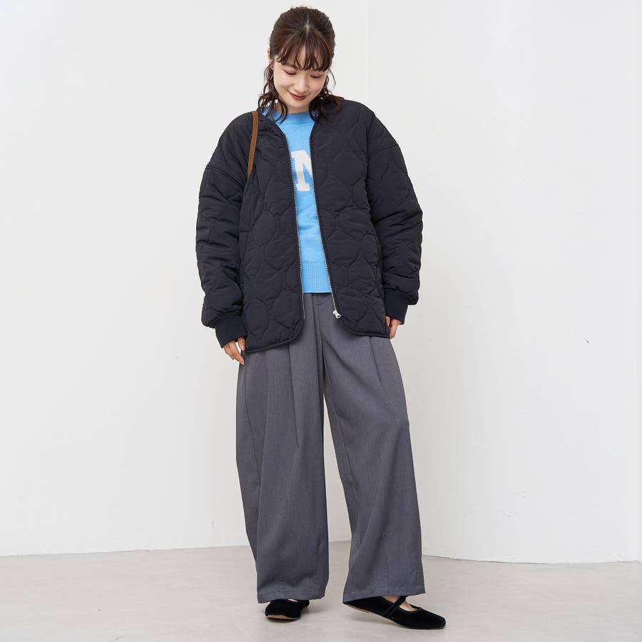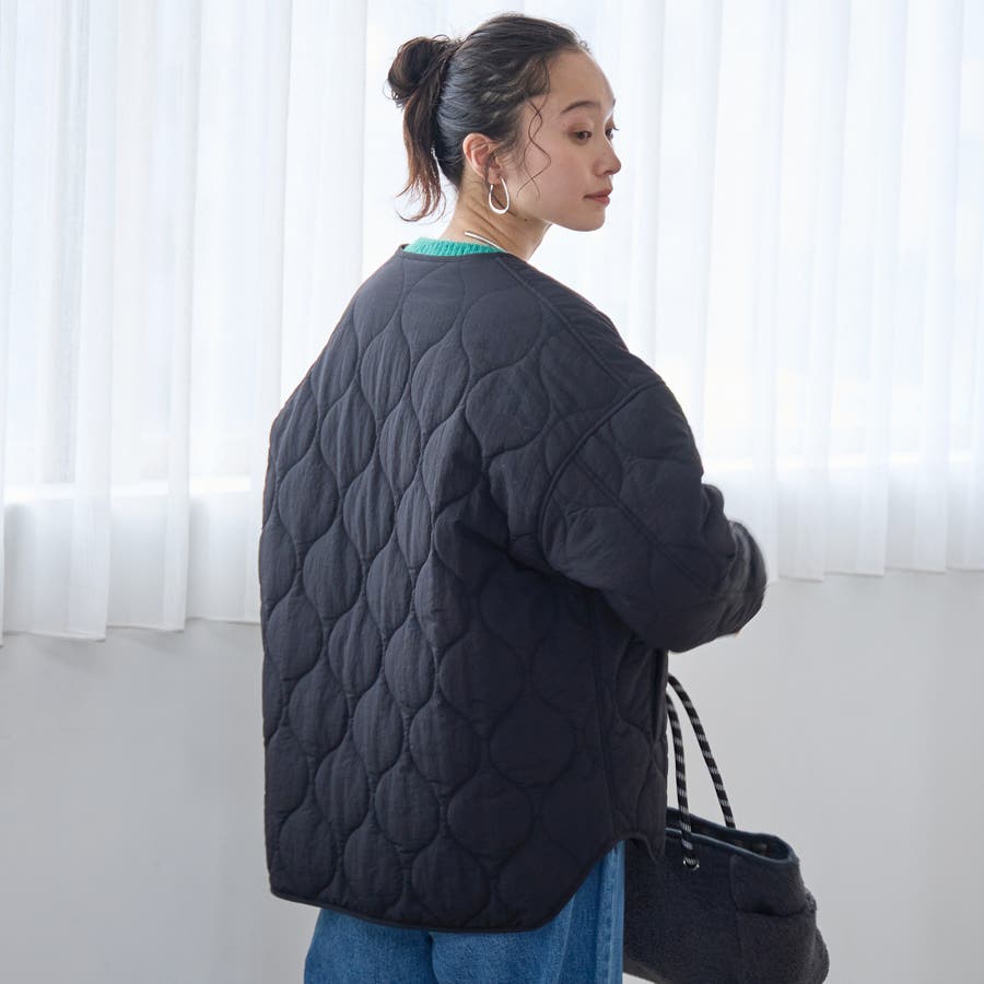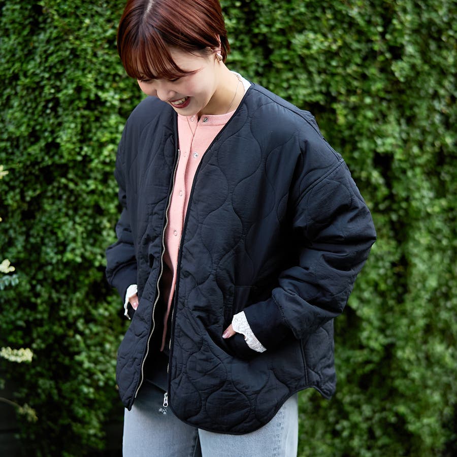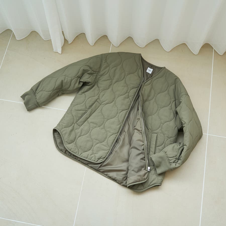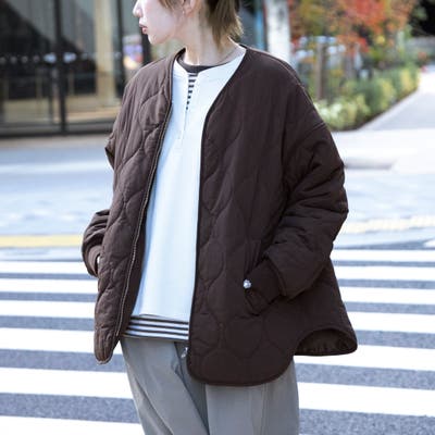 ノーカラー撥水キルティングブルゾン オーバーサイズ