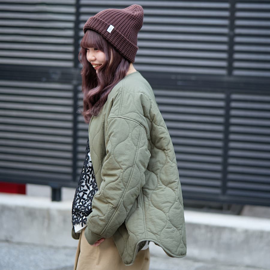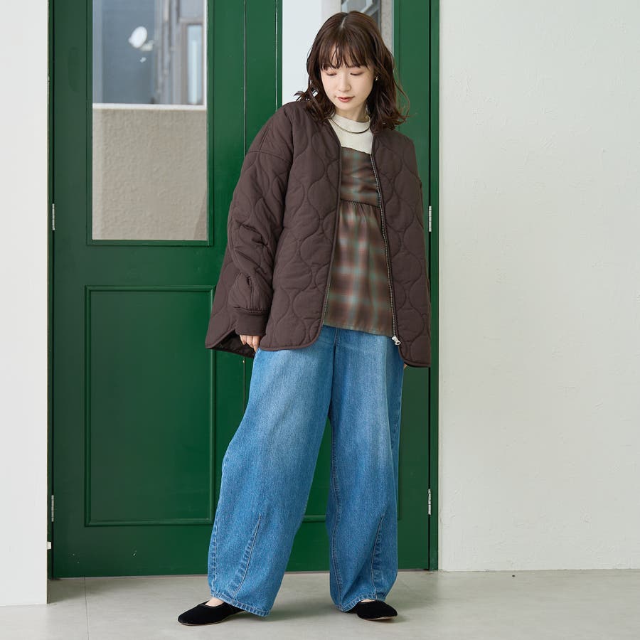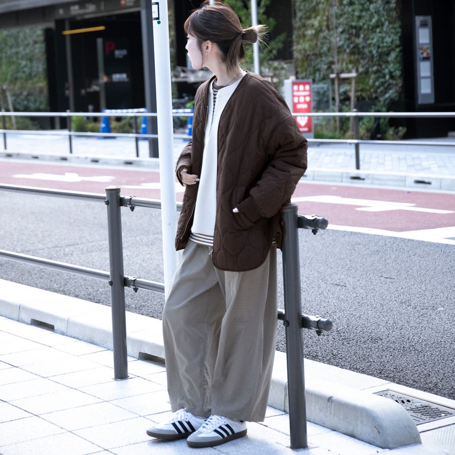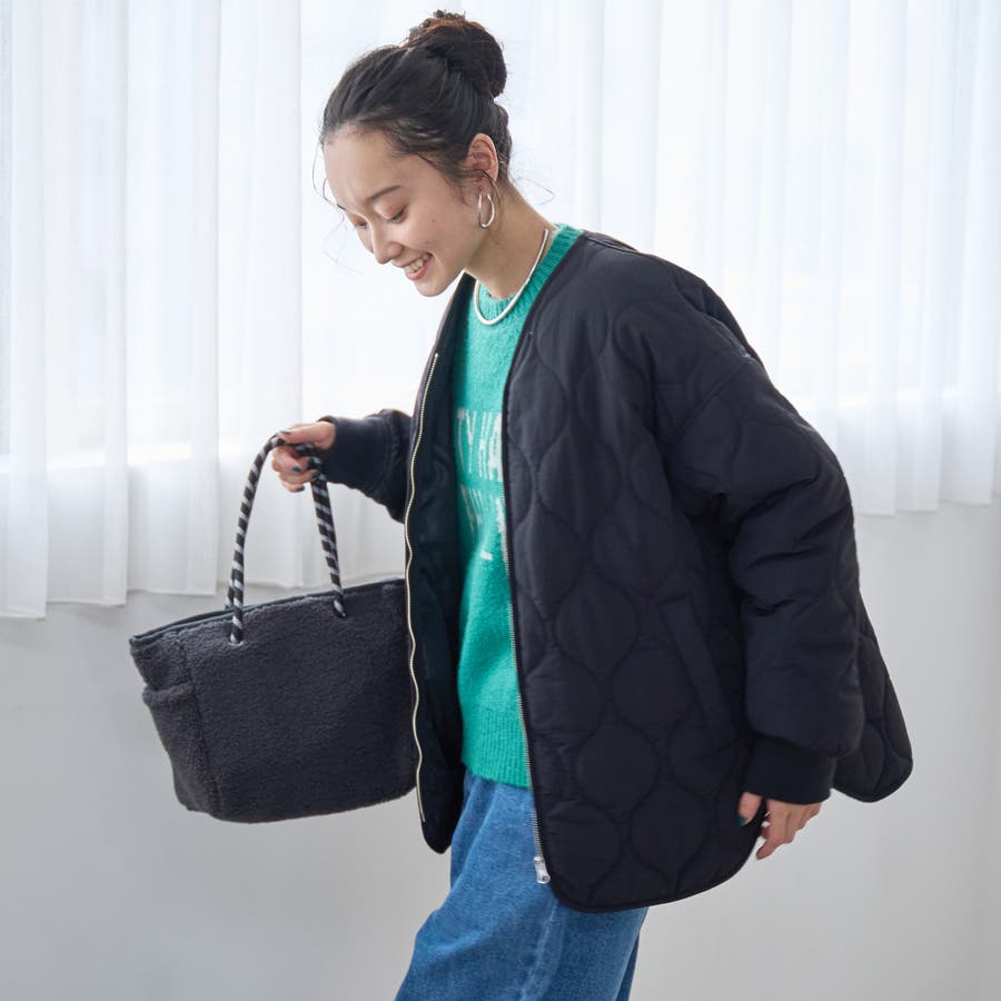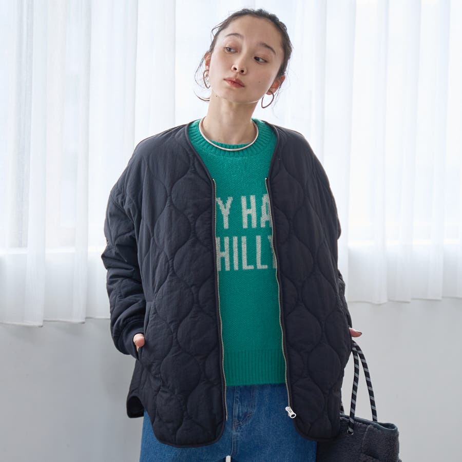 ノーカラー撥水キルティングブルゾン オーバーサイズ