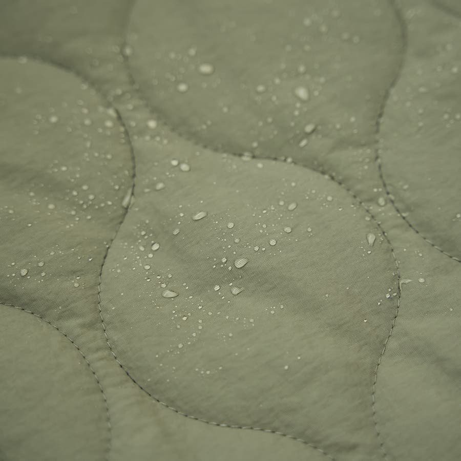 程よい厚みのキルトに撥水加工を施し、洗濯機洗いもOK。毎日気兼ねなく使えます。