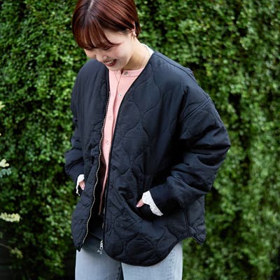 今までのものよりソフトな生地感で着心地が軽やかに。カジュアルなキルティングとフロントジップで見た目も使い勝手も◎。