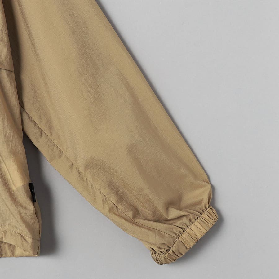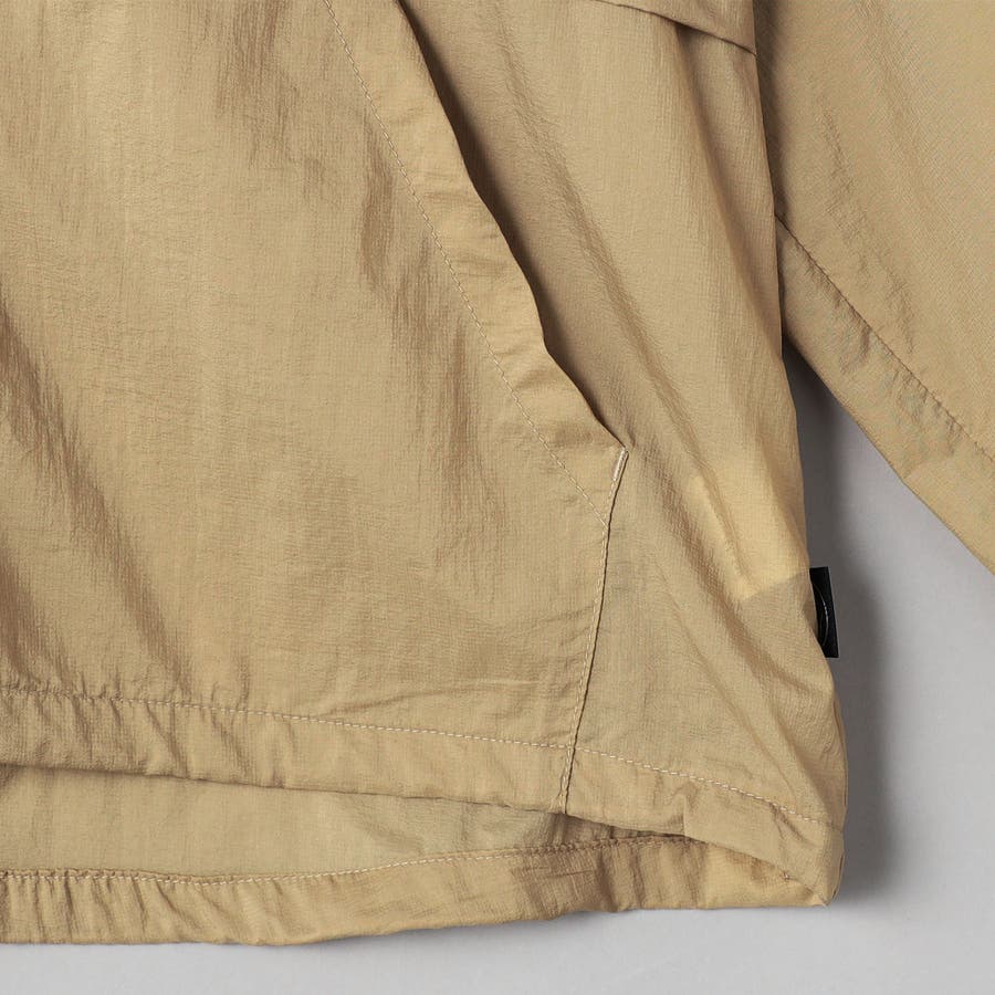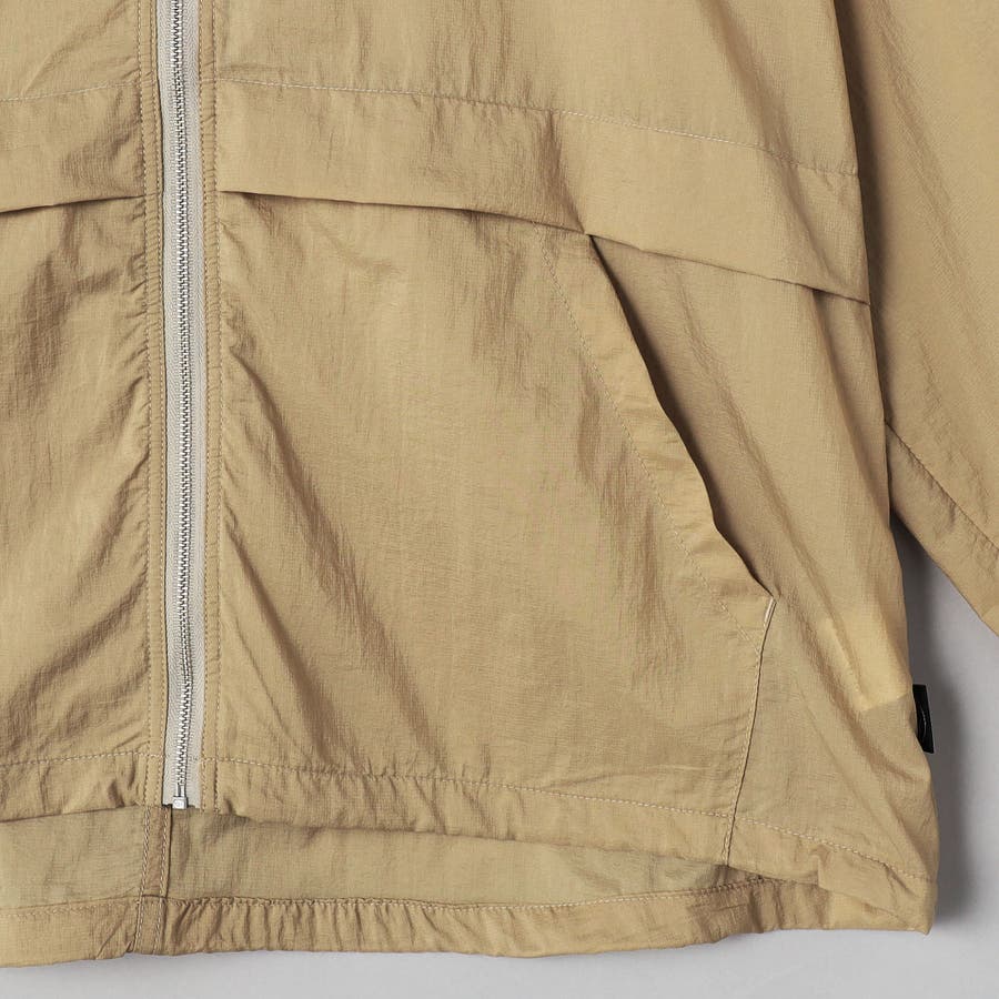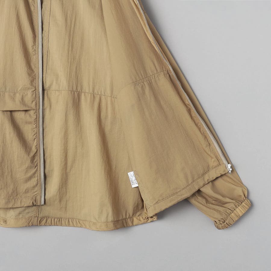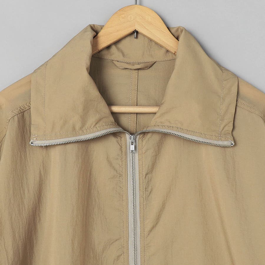 スタンドカラー仕様で、ZIPを開けて襟元を抜いて着用すると抜け感のあるスタイリングに。
