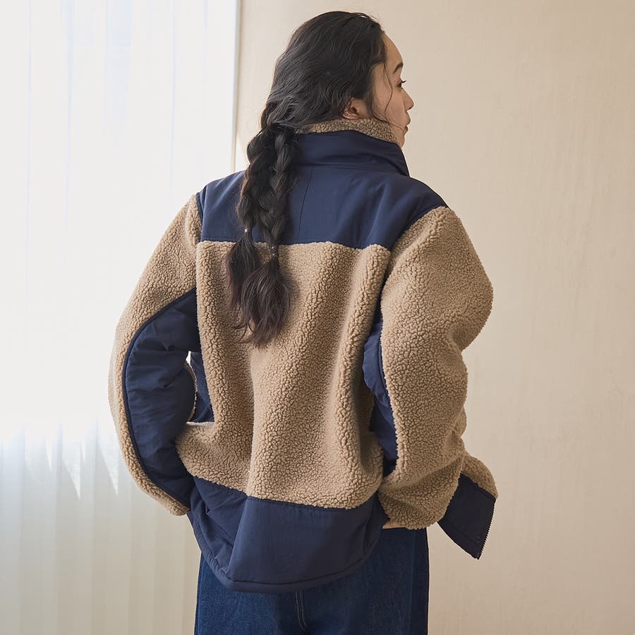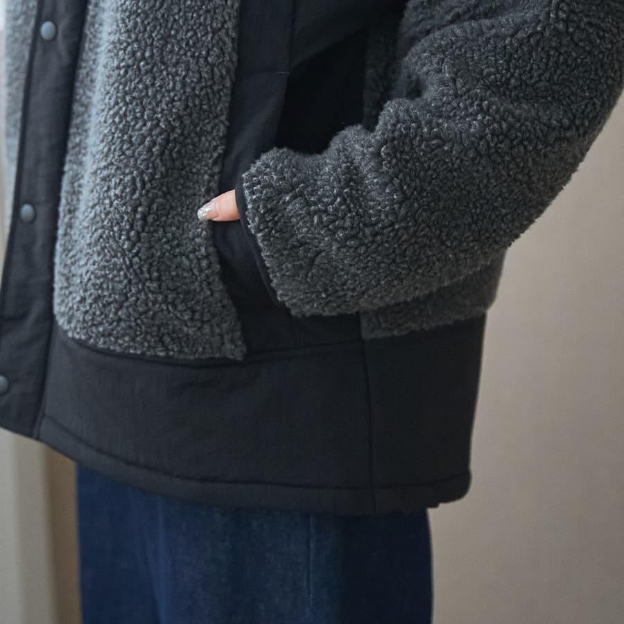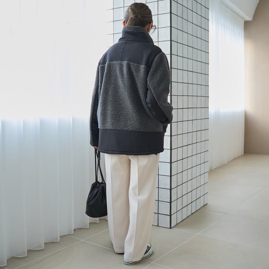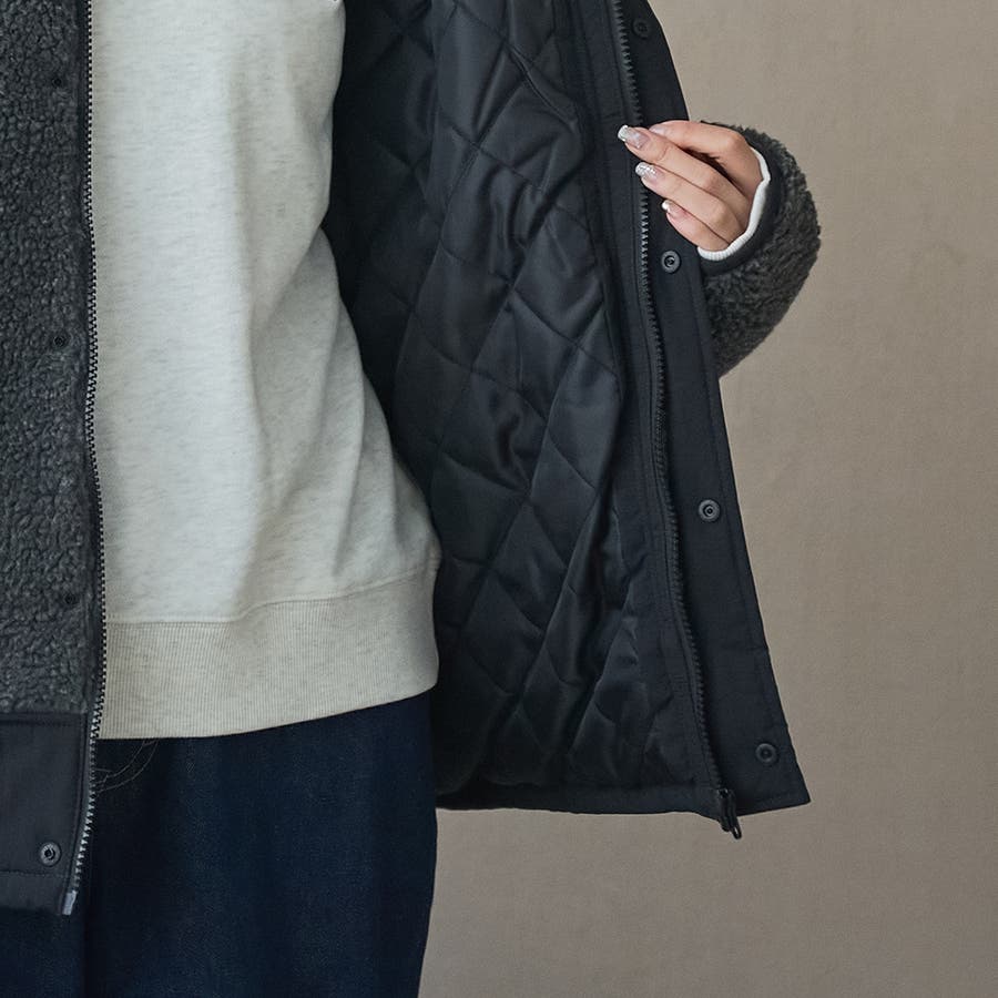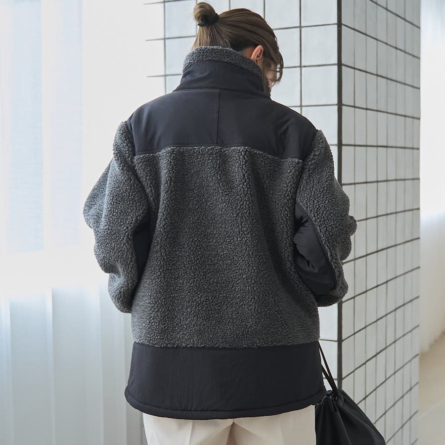 ナイロン地×ボア素材の異素材コンビが今っぽく、スポーティさと季節感を兼ね備えた一枚です。