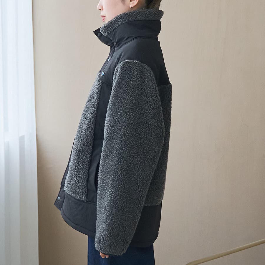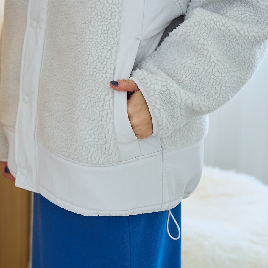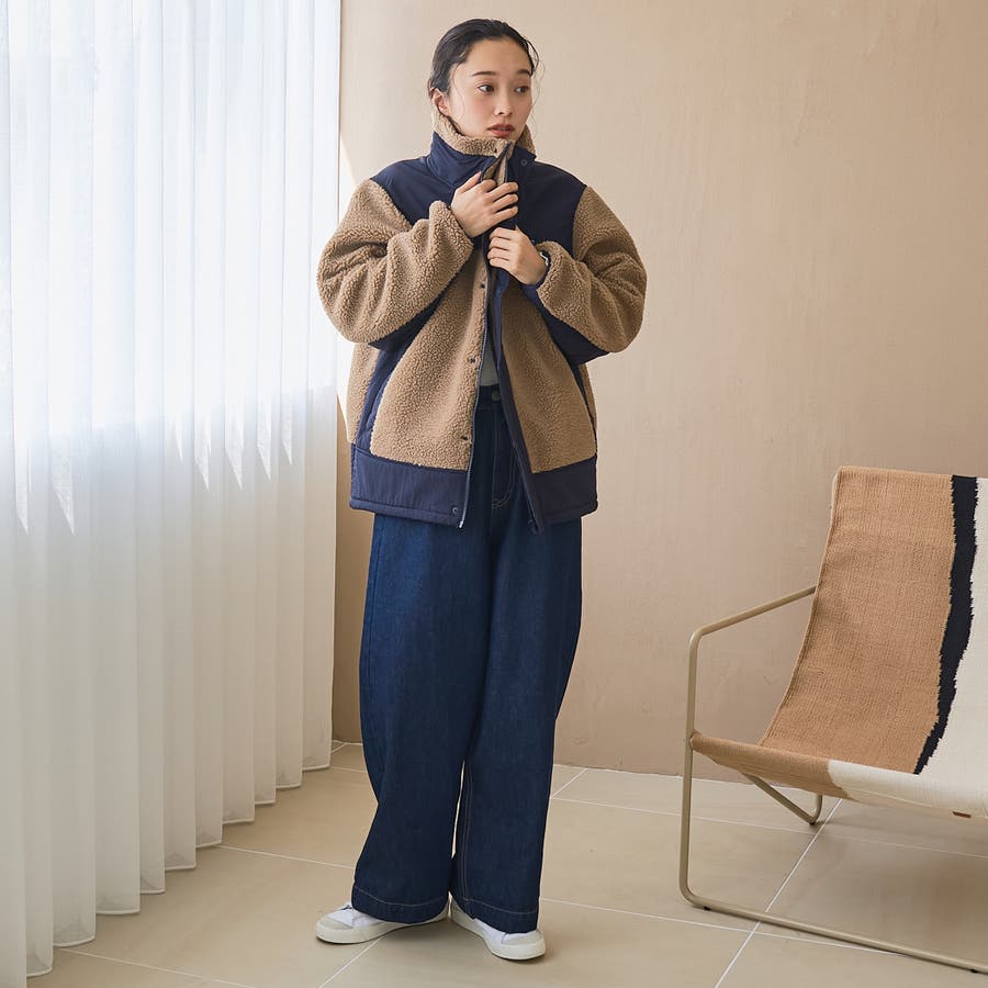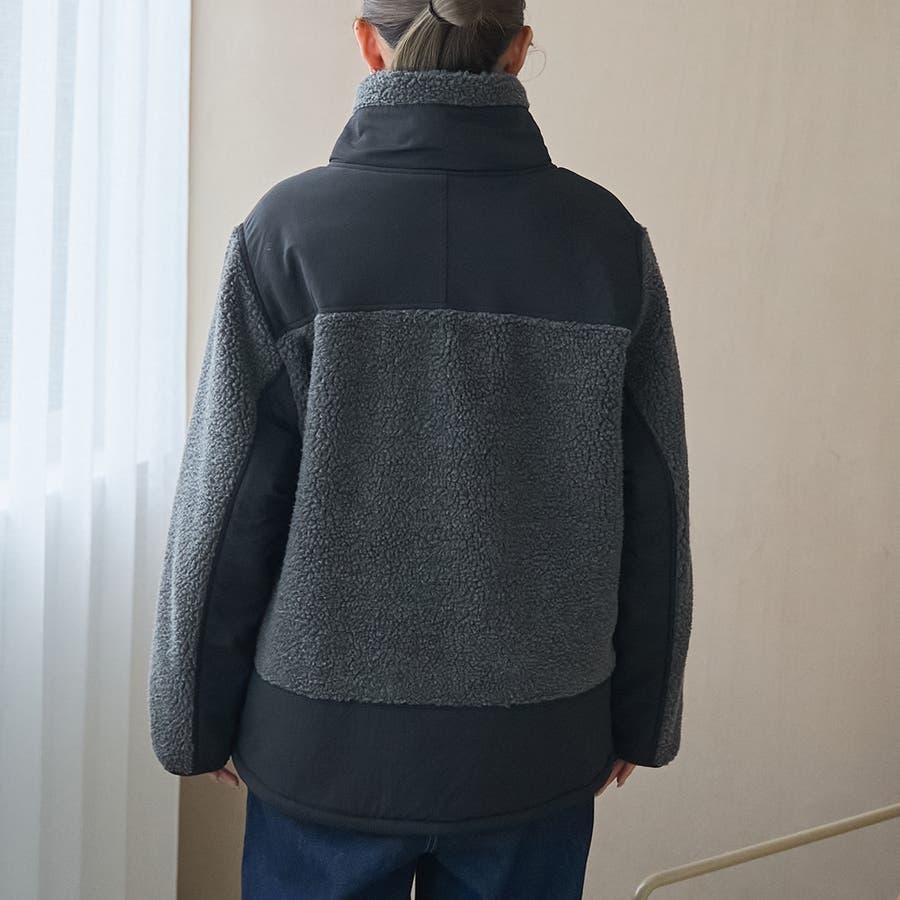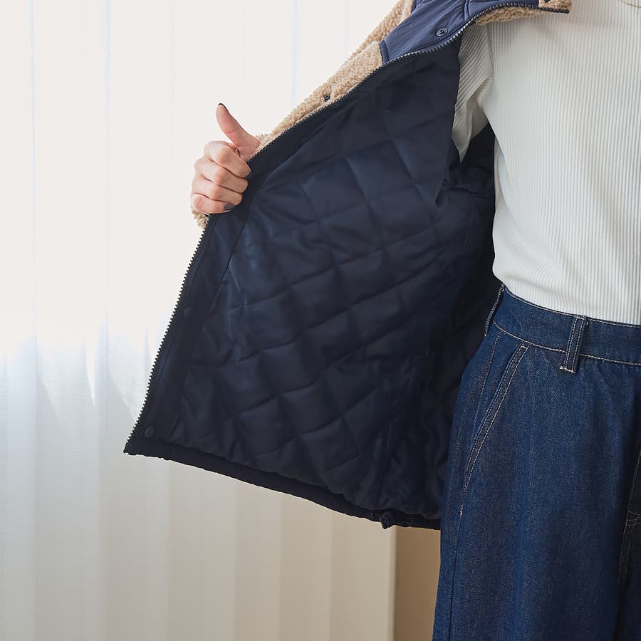 ナイロン地×ボア素材の異素材コンビが今っぽく、スポーティさと季節感を兼ね備えた一枚です。