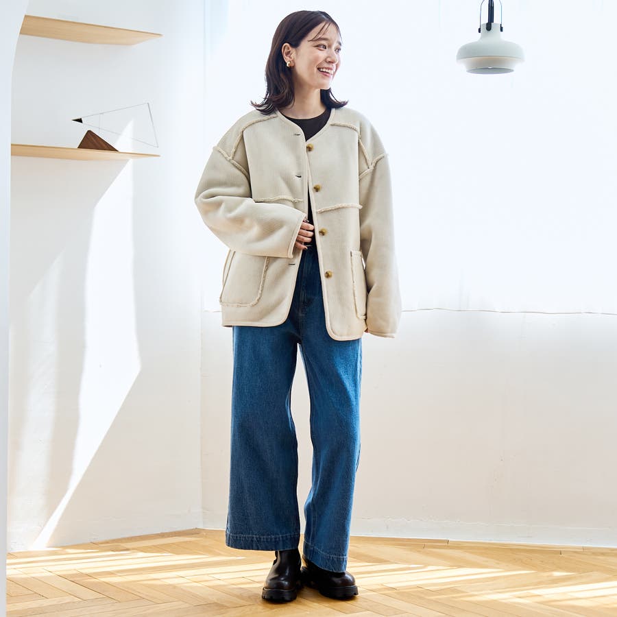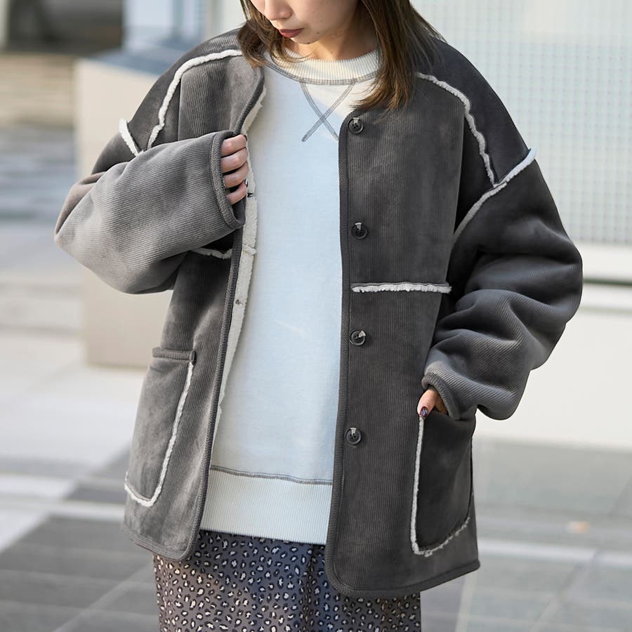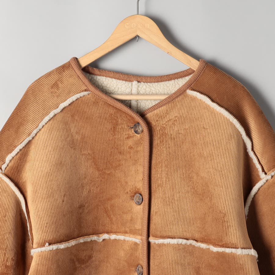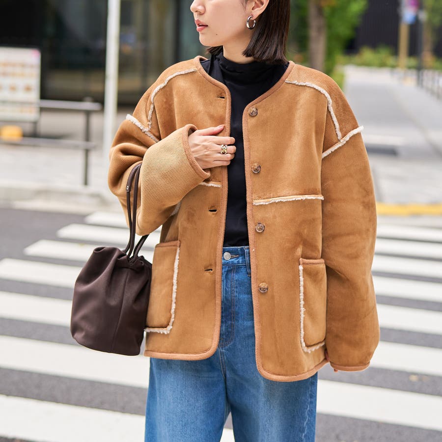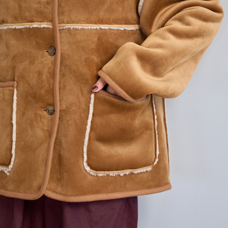 コーデュロイ×ボアの異なる素材感が魅力のアイテム。着こなしの幅が広がります。