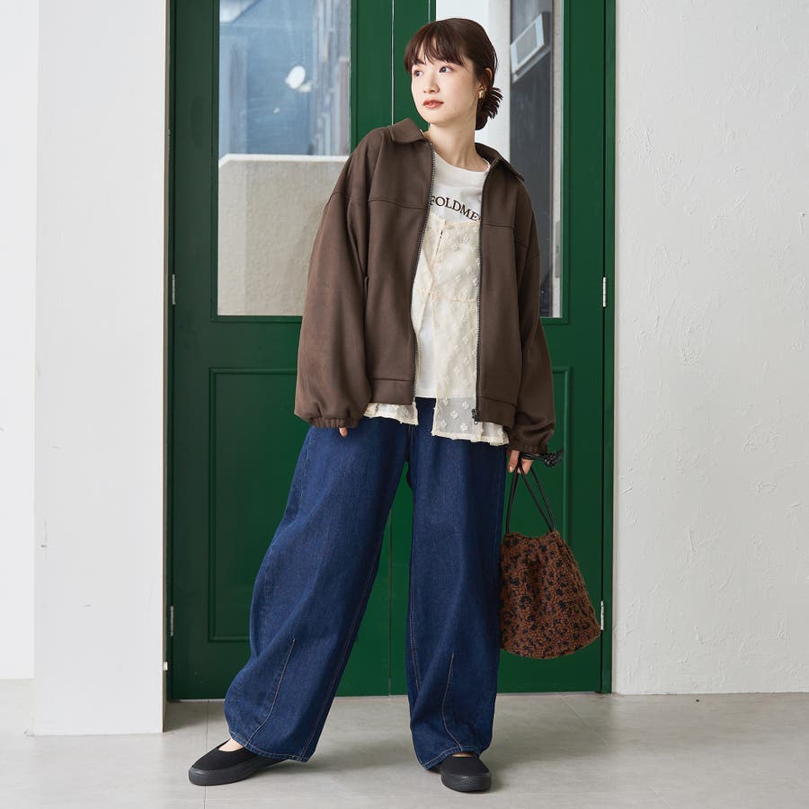 インナーにはスウェットやトレーナーなど、リラックス感のあるアイテムが好相性。