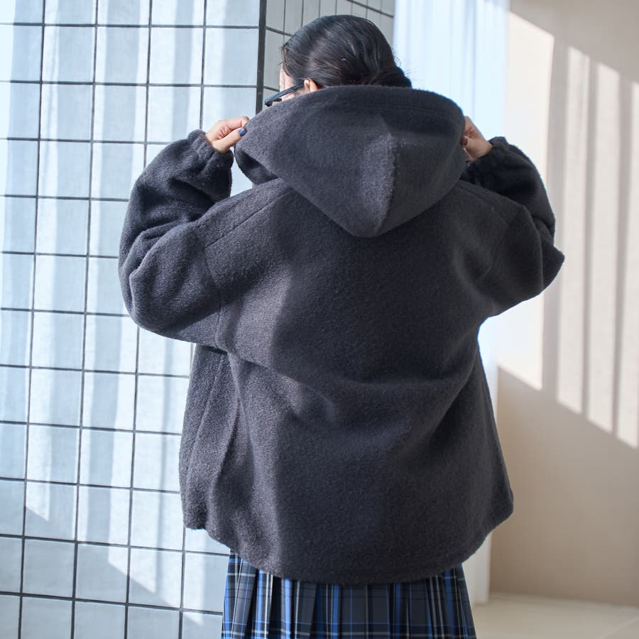 襟は高め&フード付きで首元までしっかり防寒。