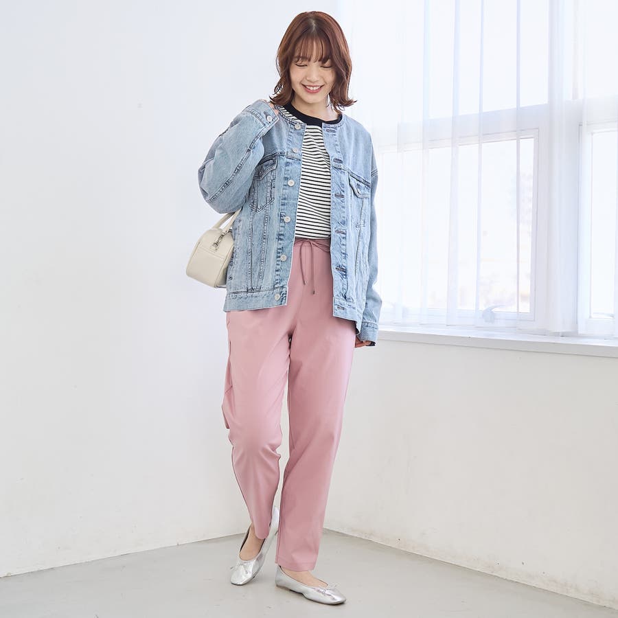 同シリーズのデニムパンツとセットアップ風の着こなしも◎
