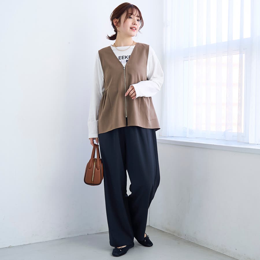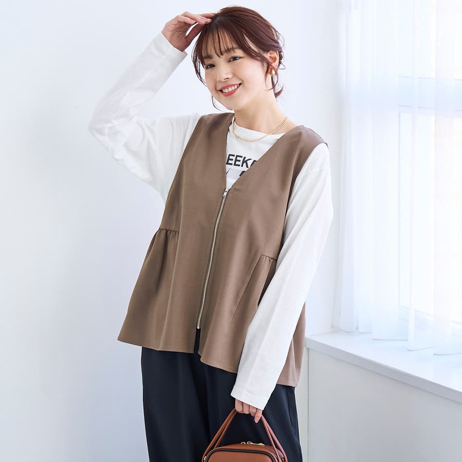 リネンライクで軽やかに。春映えペプラムジップベスト