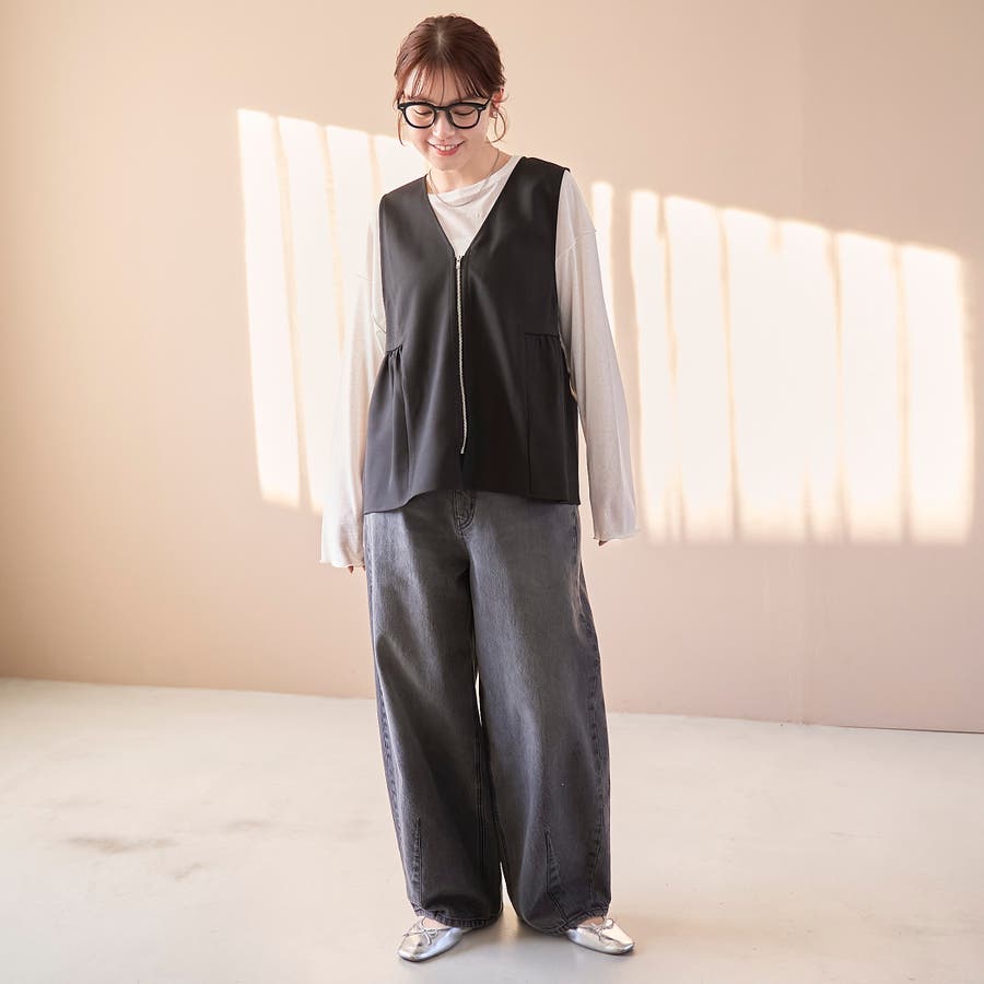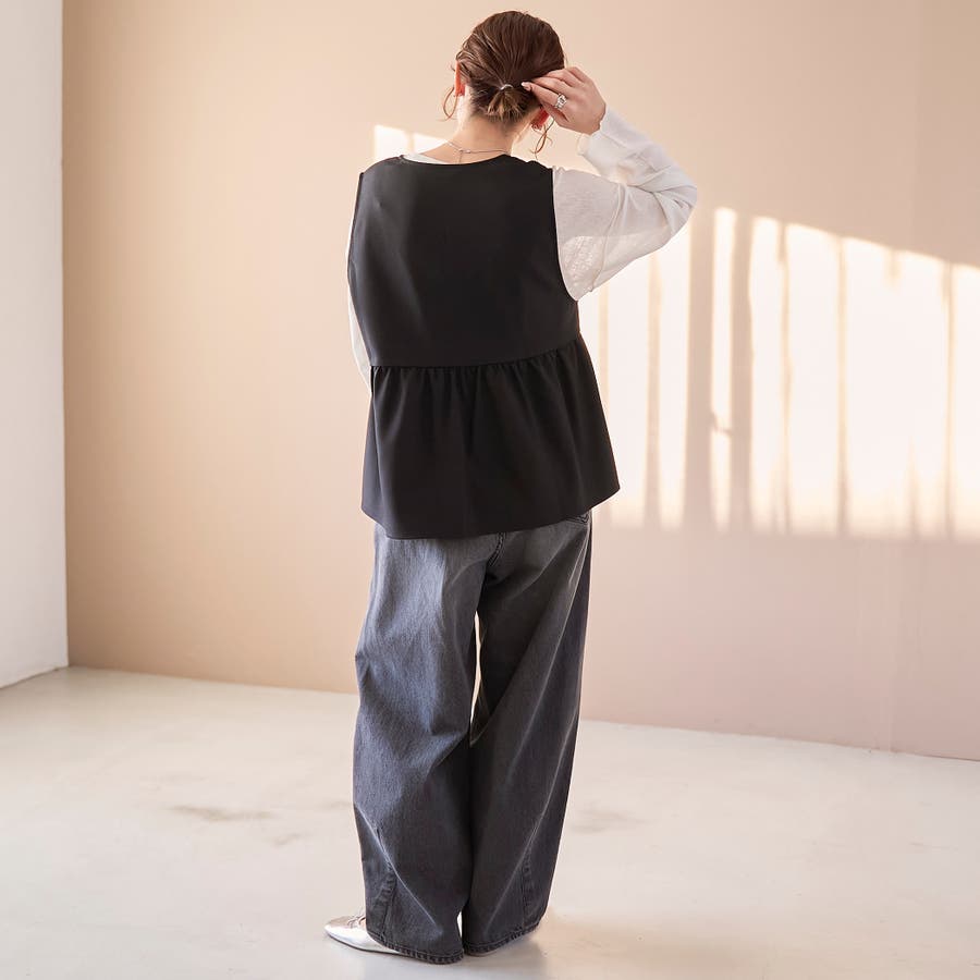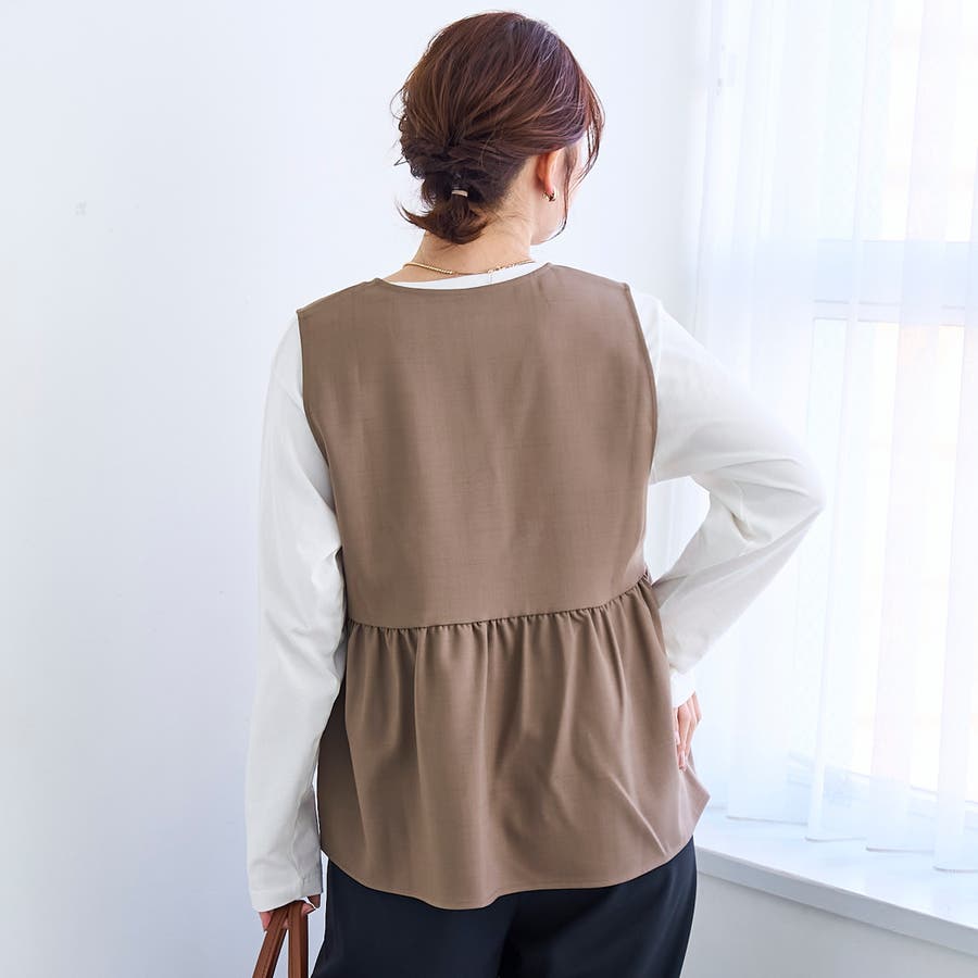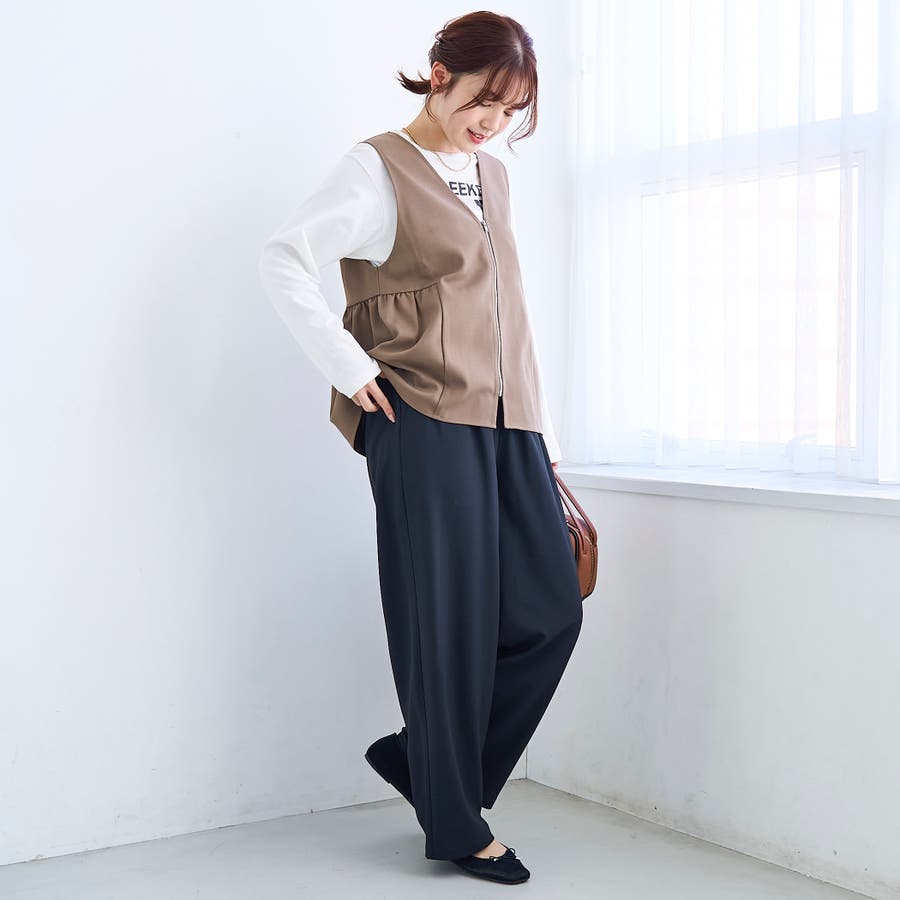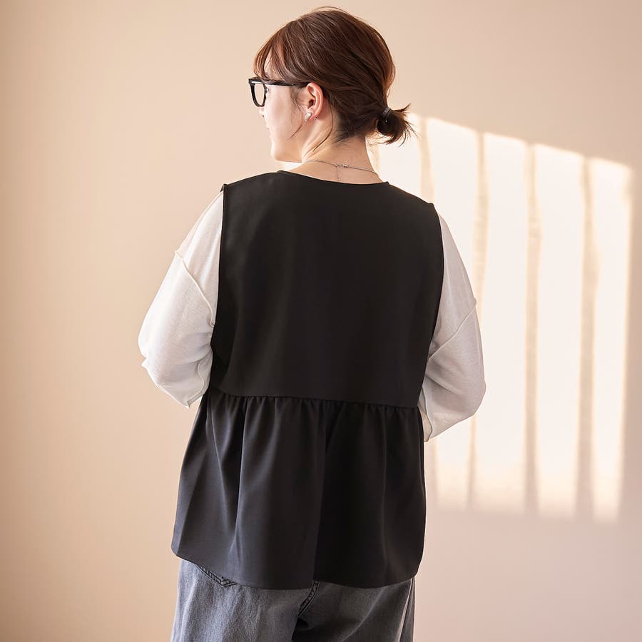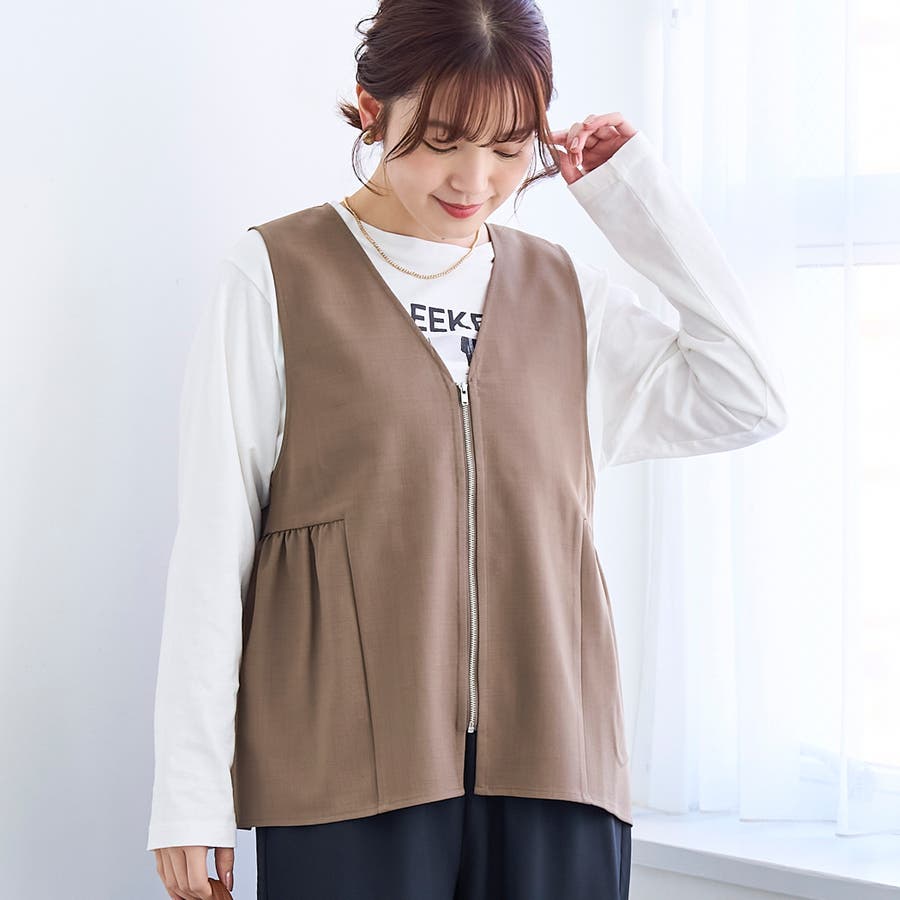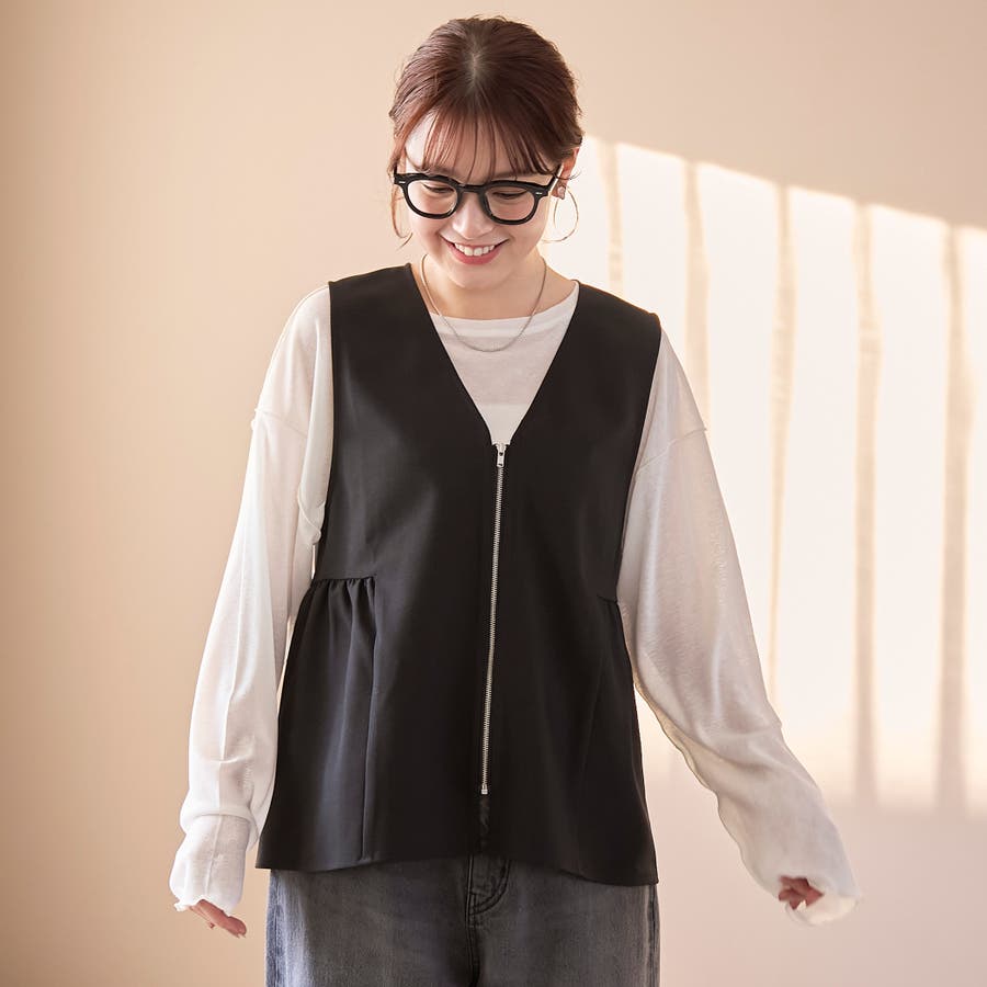 リネンライク ペプラムジップベスト