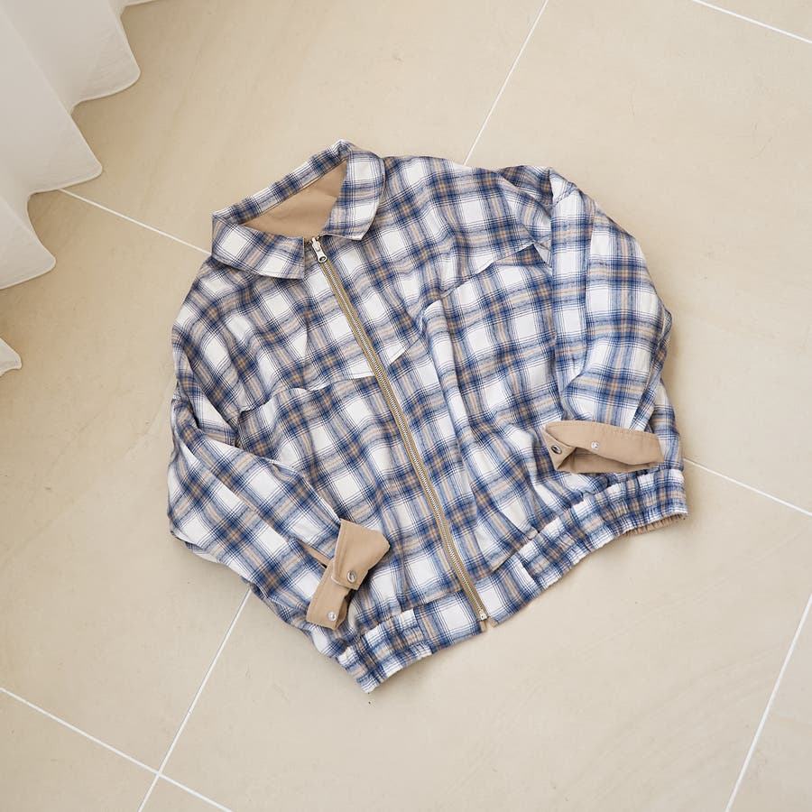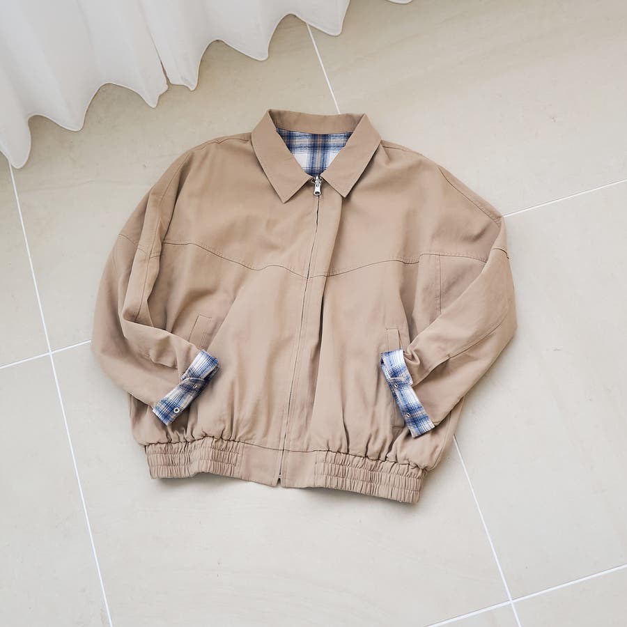 素材、混率別でカラー違いのアイテムがございます:リバーシブルチェックブルゾン(ナチュラル)(品番:76606000027)