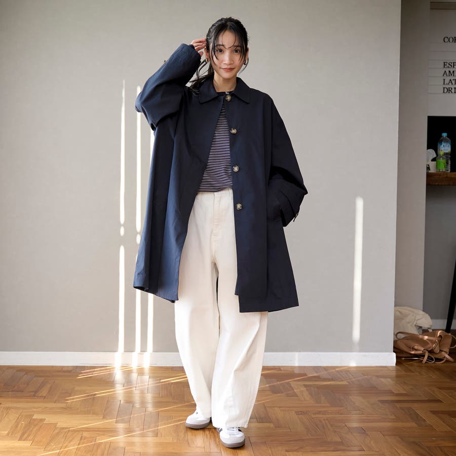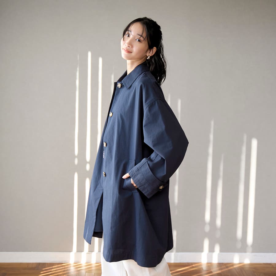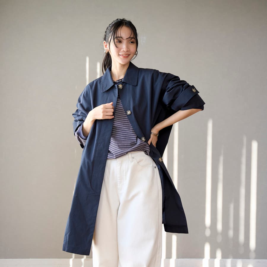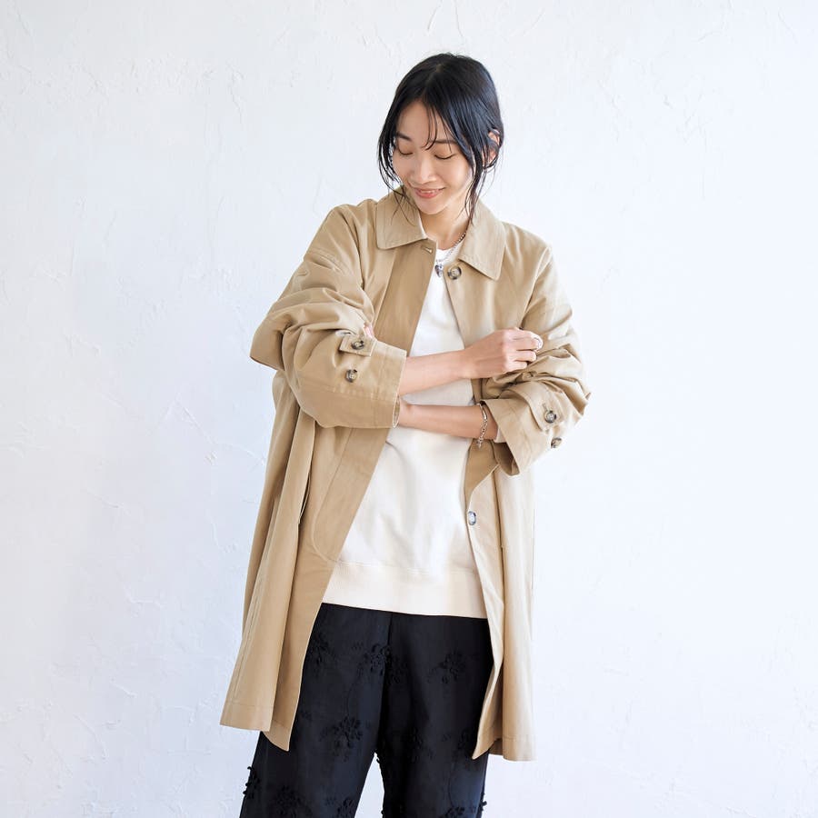 ふわりと広がるテントシルエットが大人かわいいステンカラーコート