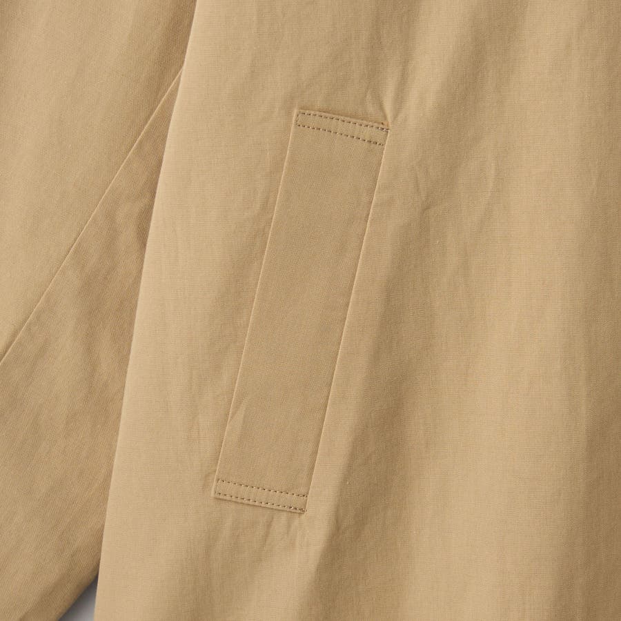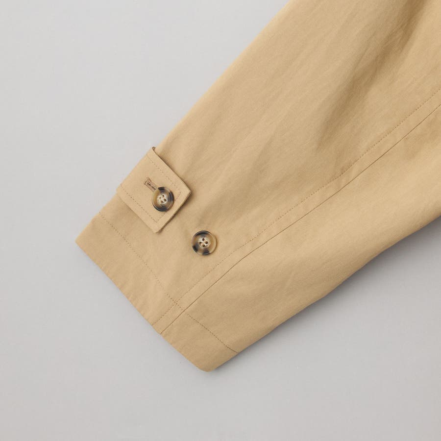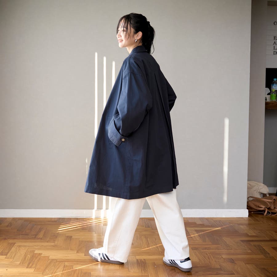 ほどよいハリと爽やかな風合いが特徴で、春先の羽織りに最適な素材感です。