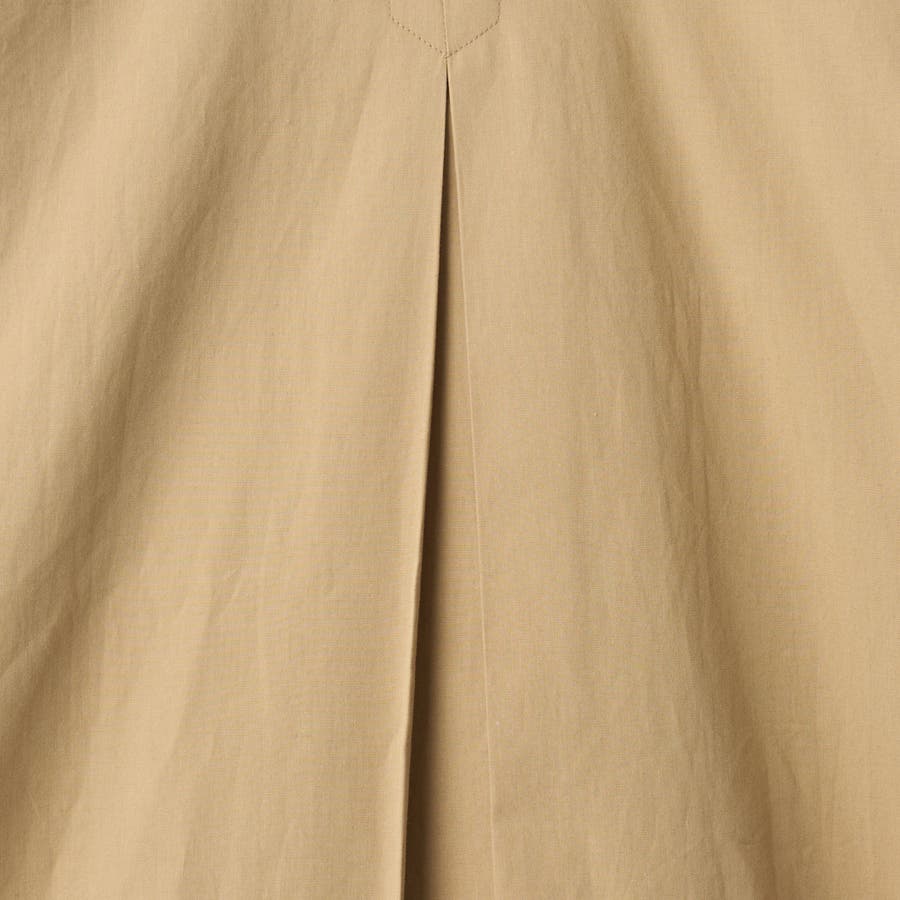 上部から入れたバックプリーツがふわりと広がり、ゆったりとしたテントシルエットがさりげなく体型カバーにも。