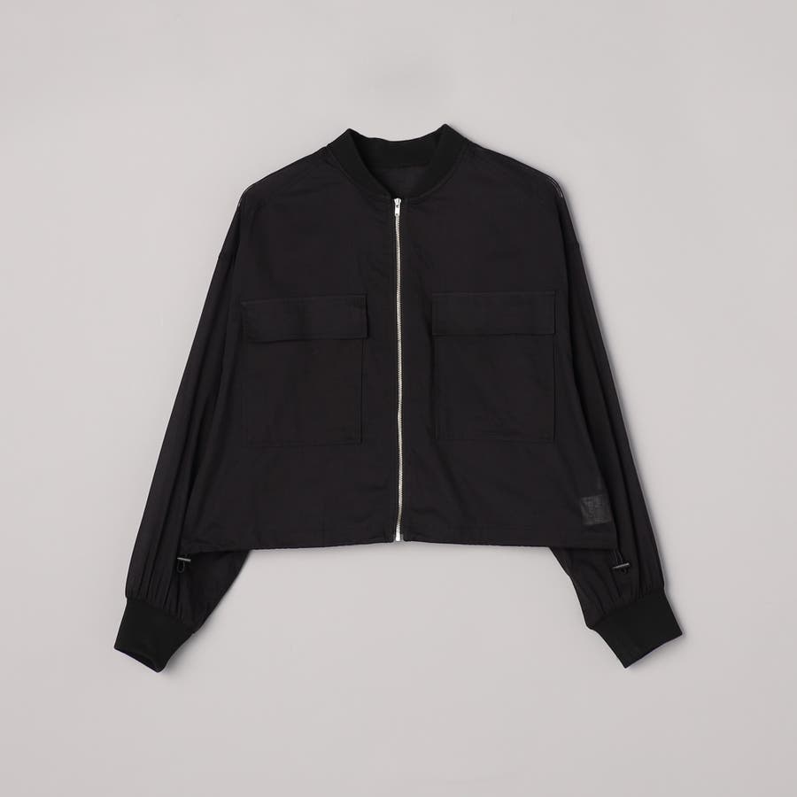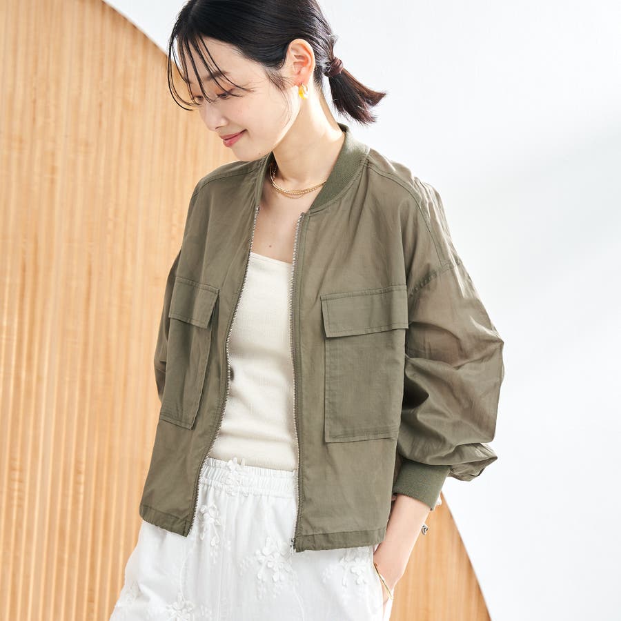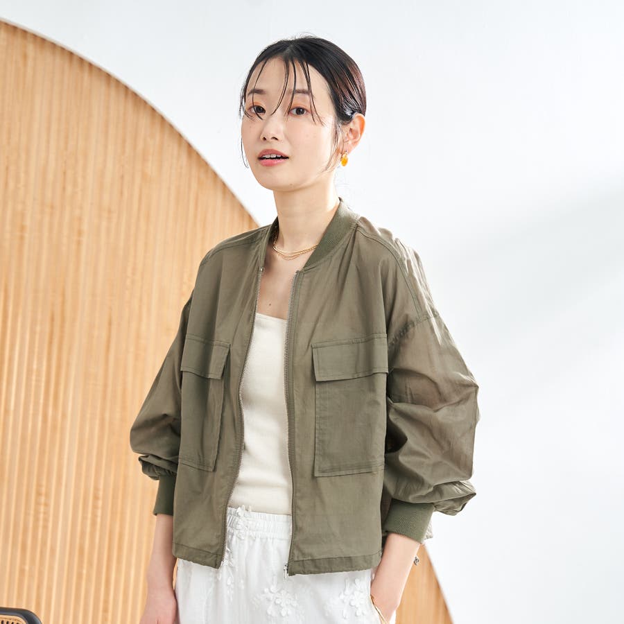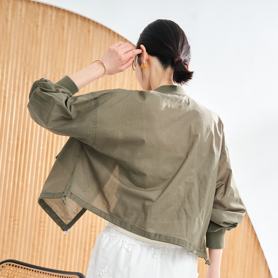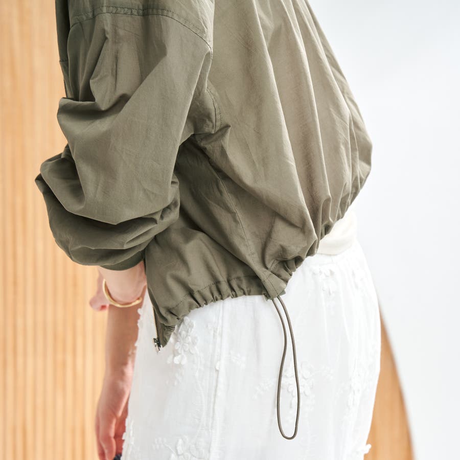 透けすぎないシアー素材のブルゾン。ドロストコードでシルエット自在。