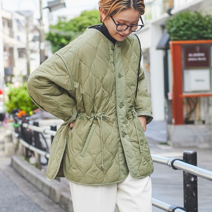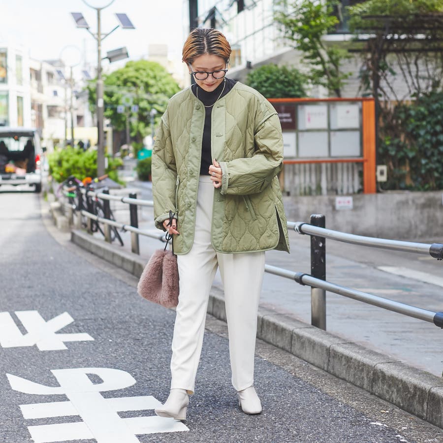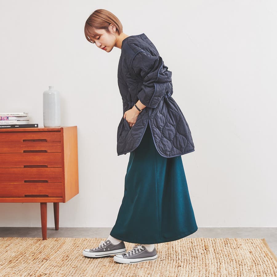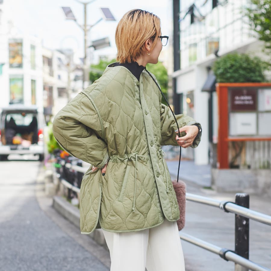 ドロストでメリハリコーデ可能。キルティングジャケット#