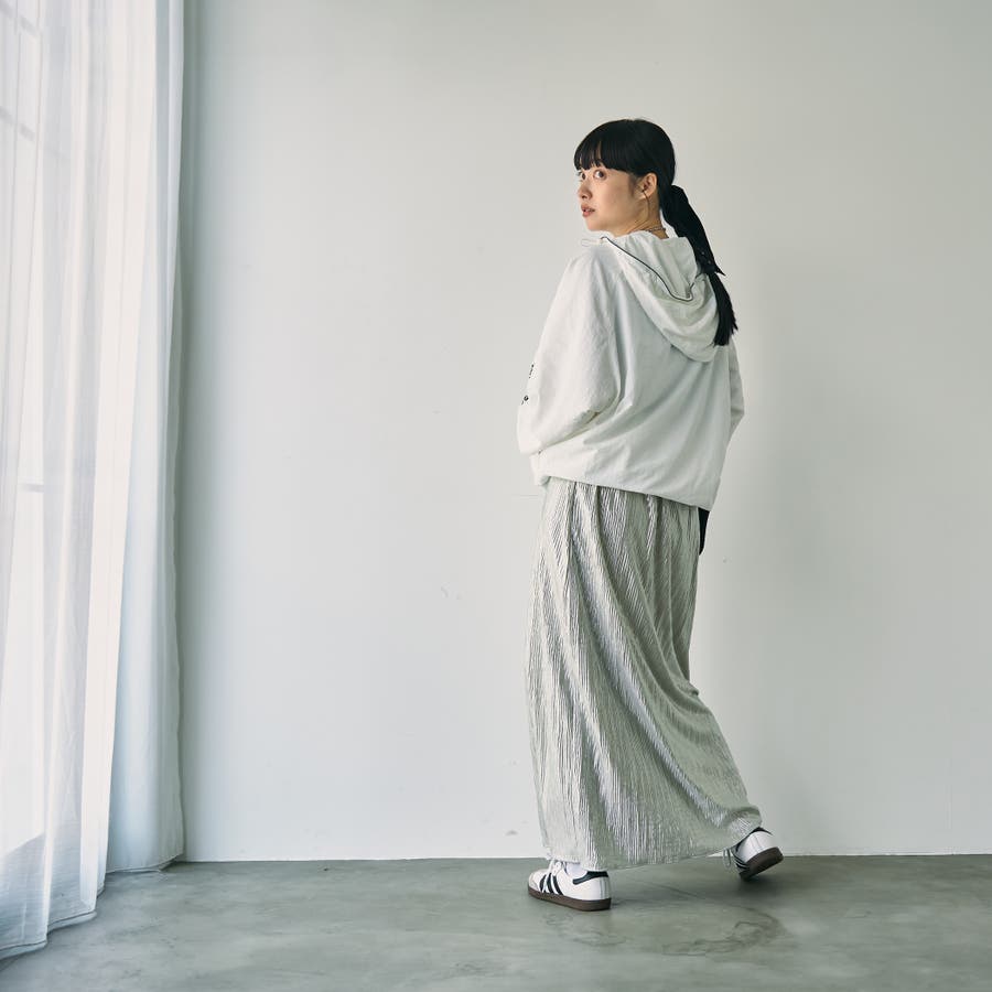 オーバーサイズなので、スカートやワンピースに合わせるとこなれ感のあるスポーツミックスコーデをお楽しみいただけます。