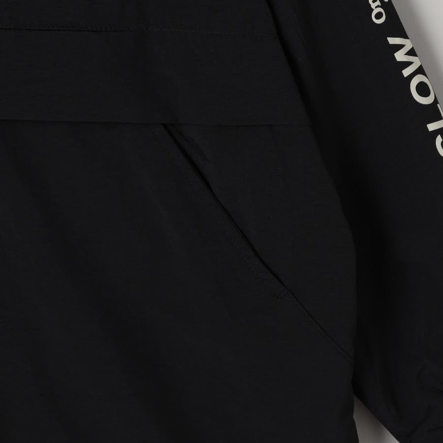 ハーフジップと大きなポケットが特徴のアノラックパーカー。