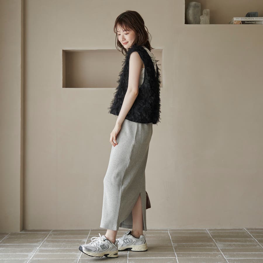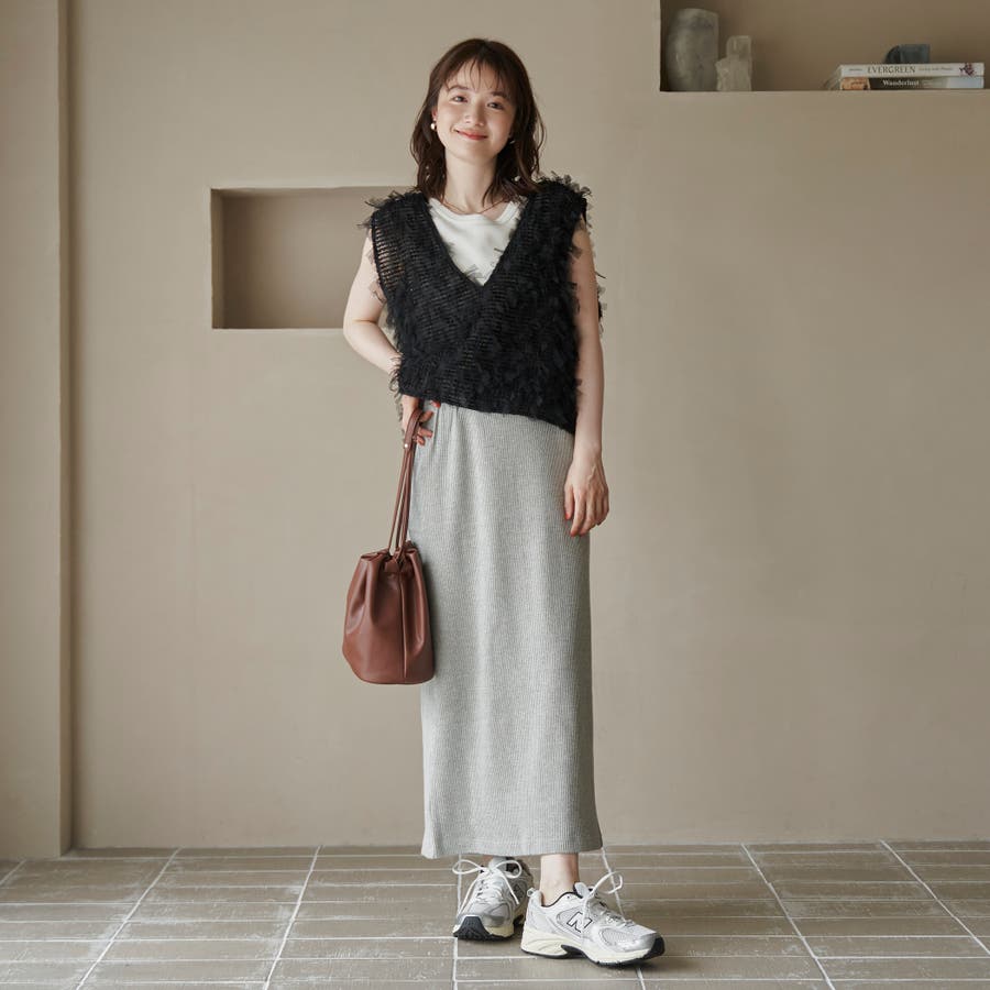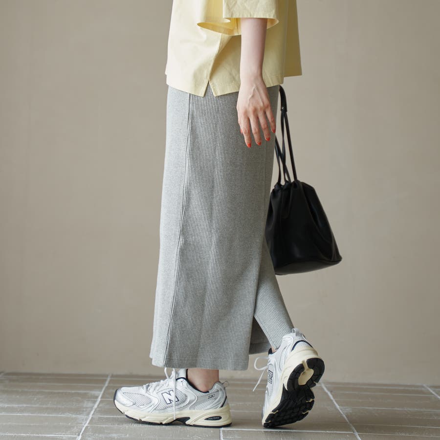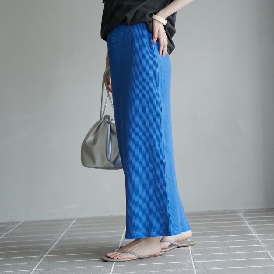 柔らかく伸縮性のある細リブニット素材は肌当たりも優しく、デイリー使いにも最適です。