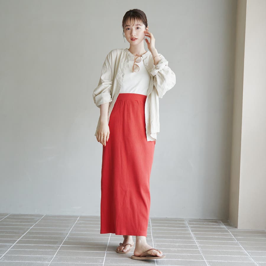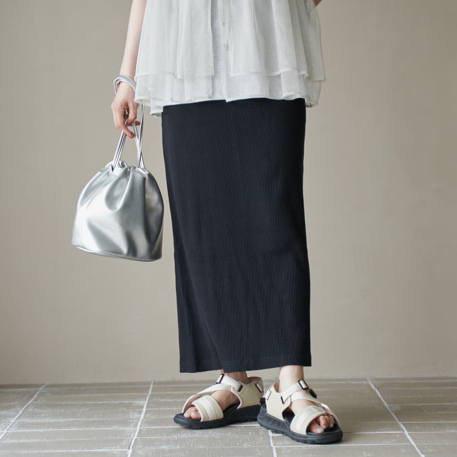 大人らしい上品さを引き立てるシンプルなナロースカート。
